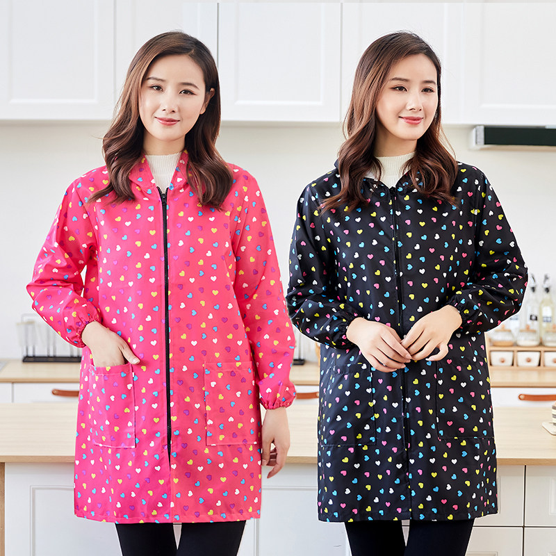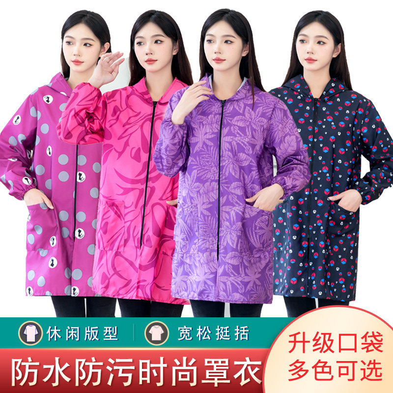 长袖防水罩衣大人围裙家用厨房做饭女护衣时尚防油拉链干活工作服