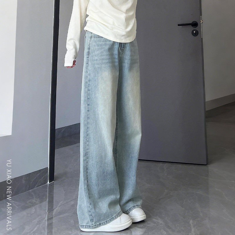 浅色阔腿牛仔裤女夏季新款宽松胖mm大尺码梨形身材显瘦高腰直筒裤
