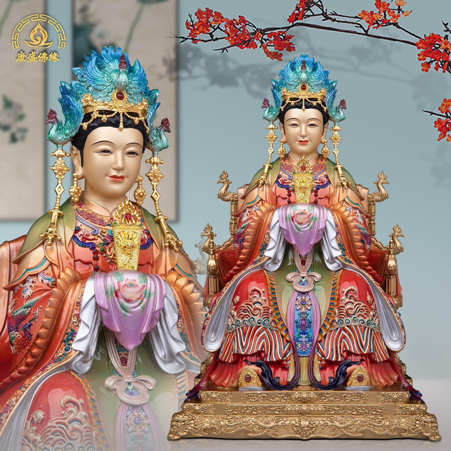 新款碧霞元君神像纯铜彩绘泰山娘娘摆件天仙圣母家用供奉泰山奶奶