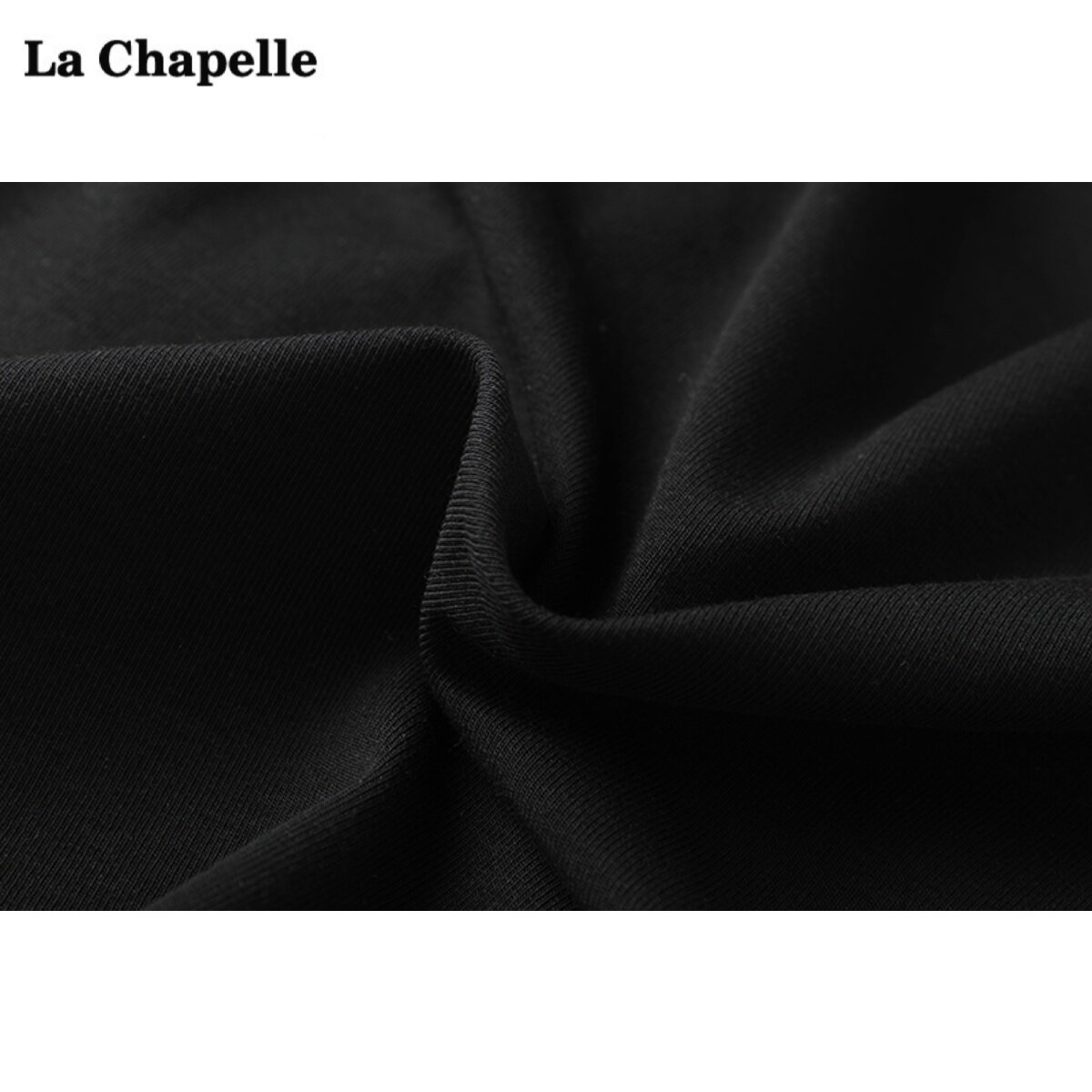 拉夏贝尔/La Chapelle黑色正肩V领t恤女夏季新款显瘦小众体恤上衣