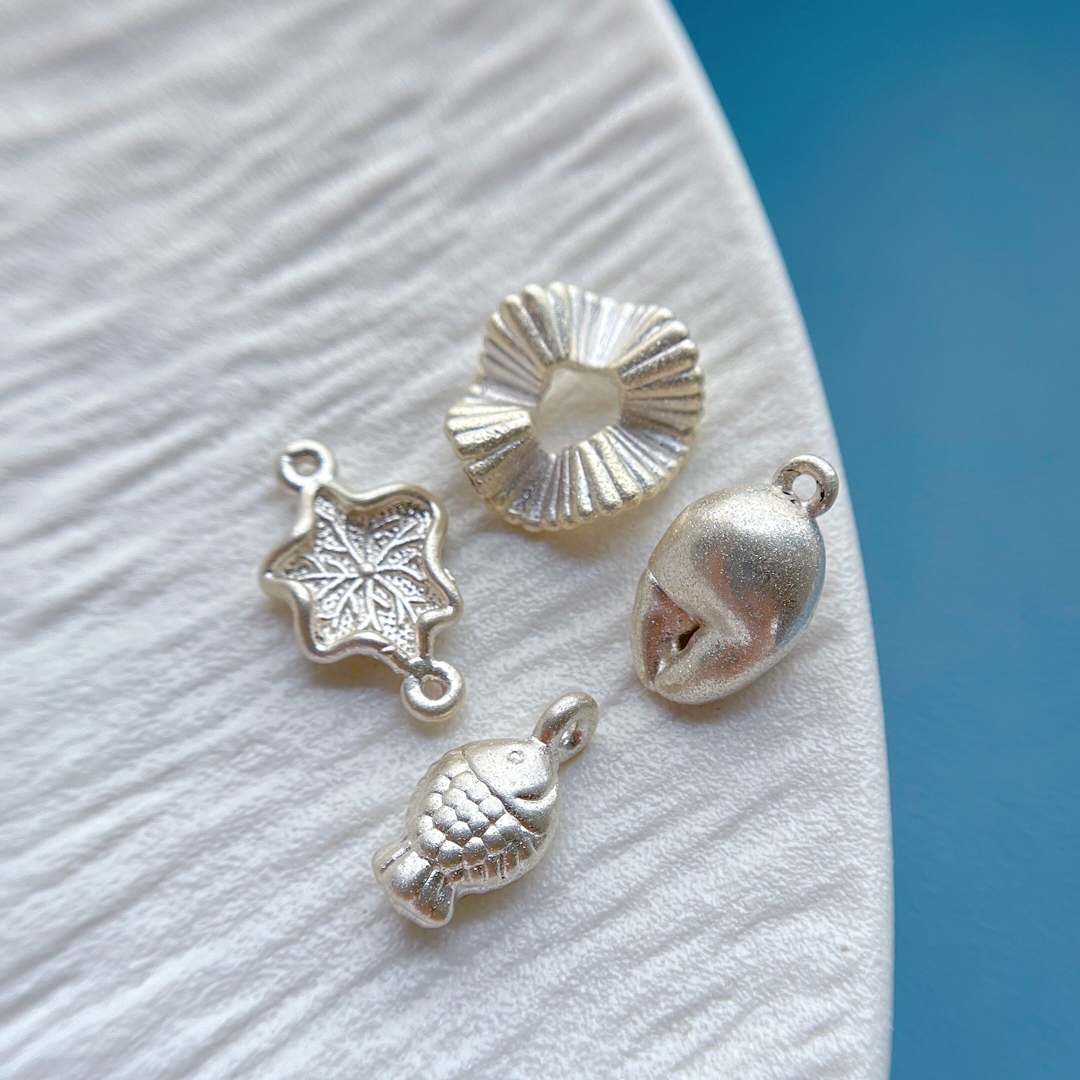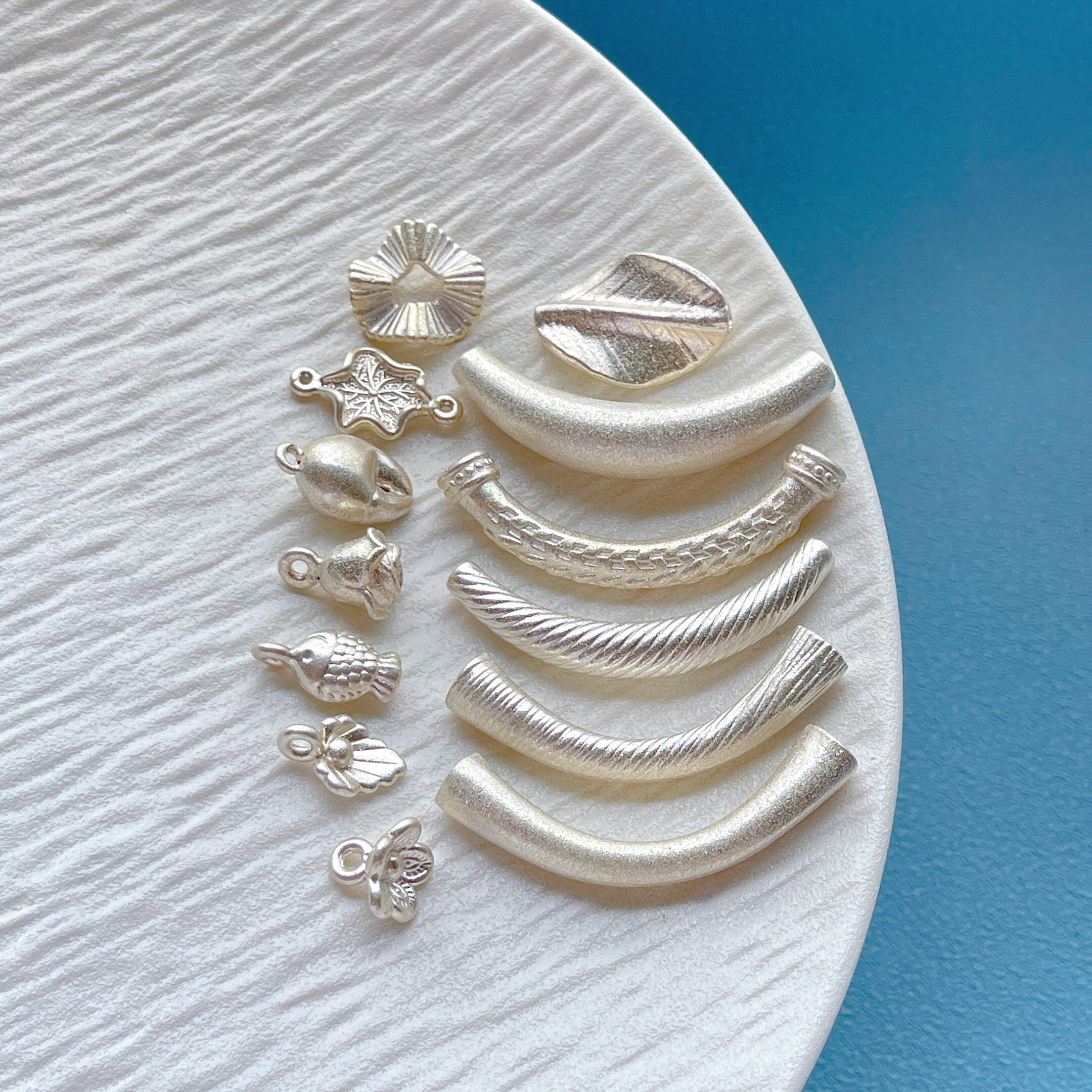 足银999纯银饰配件炫彩星光拉丝弯管手牌隔珠小花小鱼荷叶吊坠diy