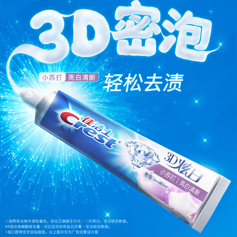 佳洁士3D炫白小苏打牙膏促销装优惠装深洁去渍清新亮白牙齿正品