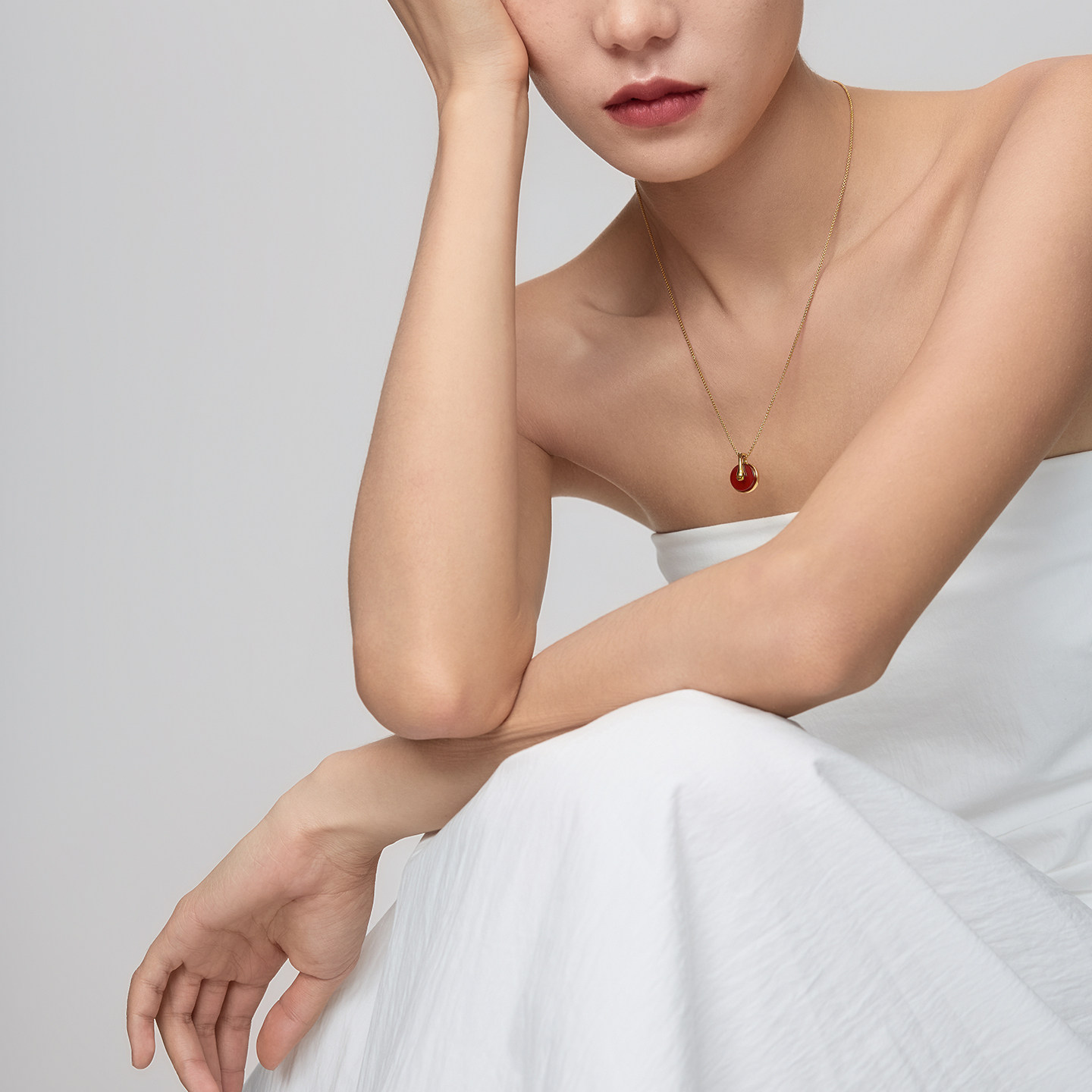 盐岛平安如意红玛瑙挂坠项链红色本命年金色吊坠新中式毛衣链长款
