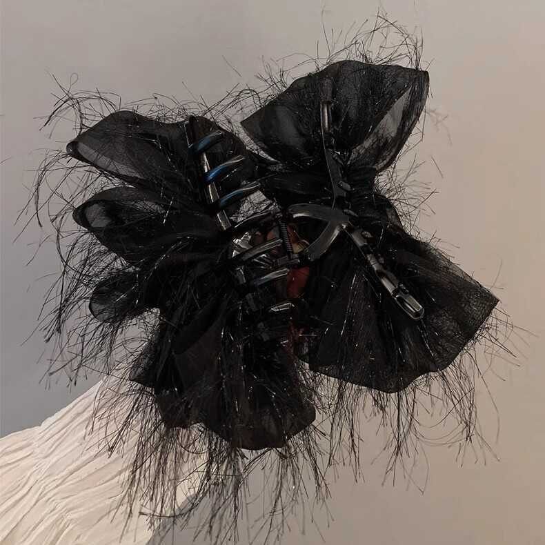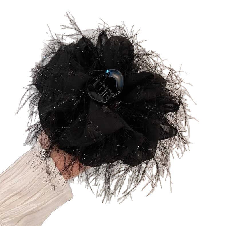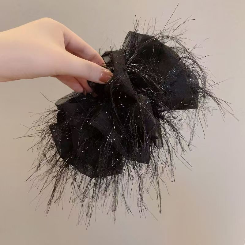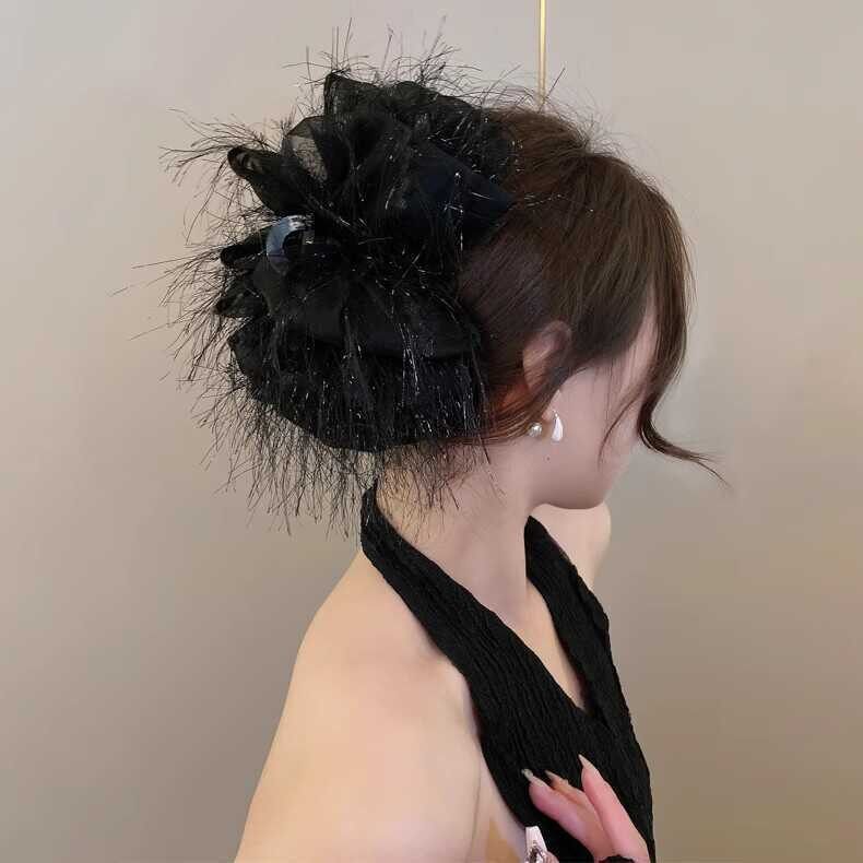 大号时尚羽毛发夹小众设计高级感蝴蝶结抓夹后脑勺盘发鲨鱼夹发饰