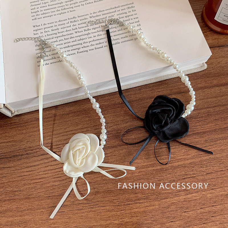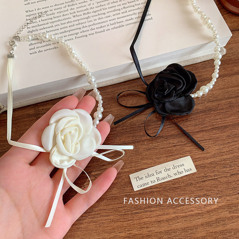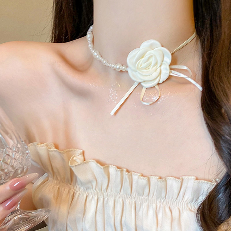 山茶花珍珠项链女choker锁骨链拼接轻奢小众花朵颈链高级脖子配饰