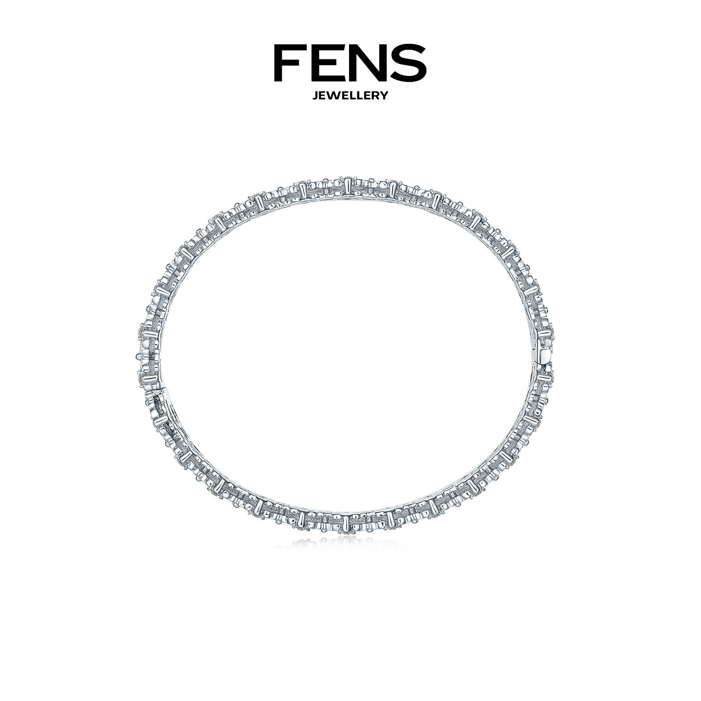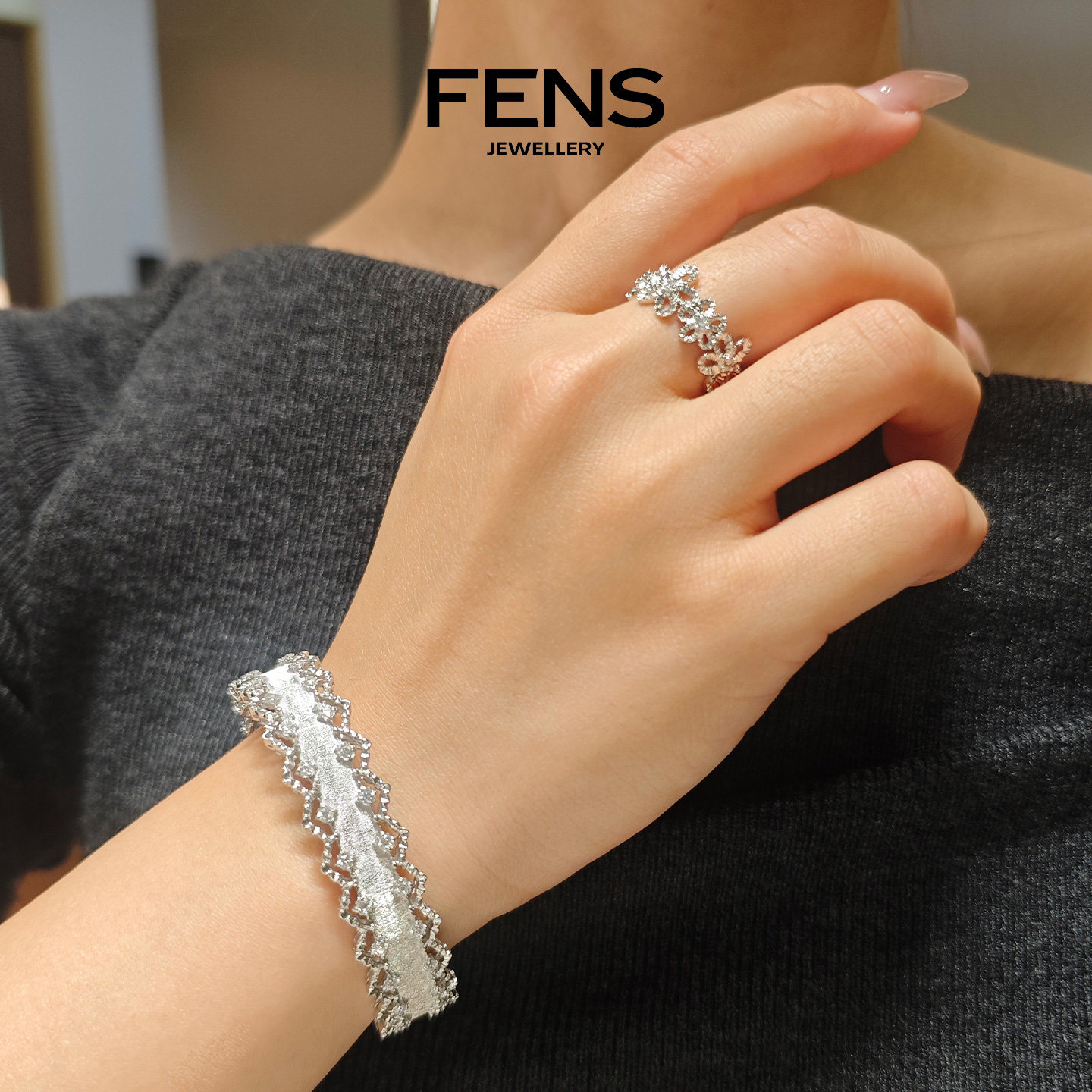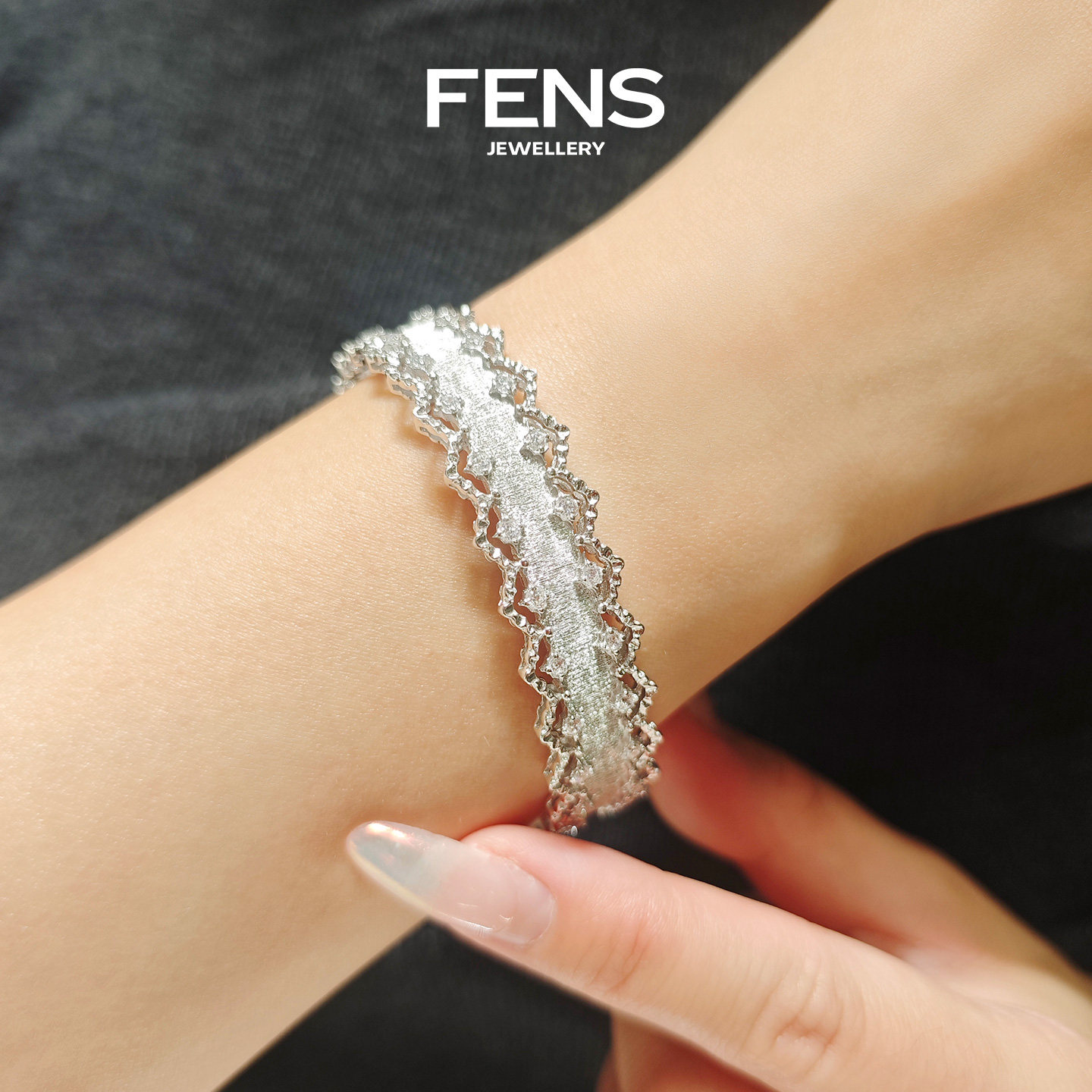 FENS珠宝 浮光织境系列缂丝锆石手镯女复古立体925银镶嵌蕾丝手饰