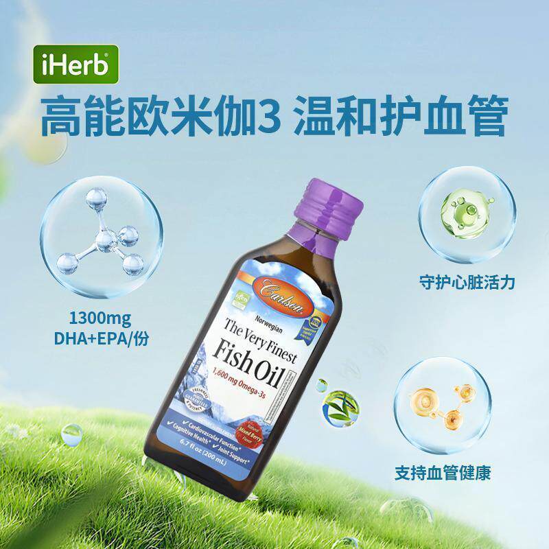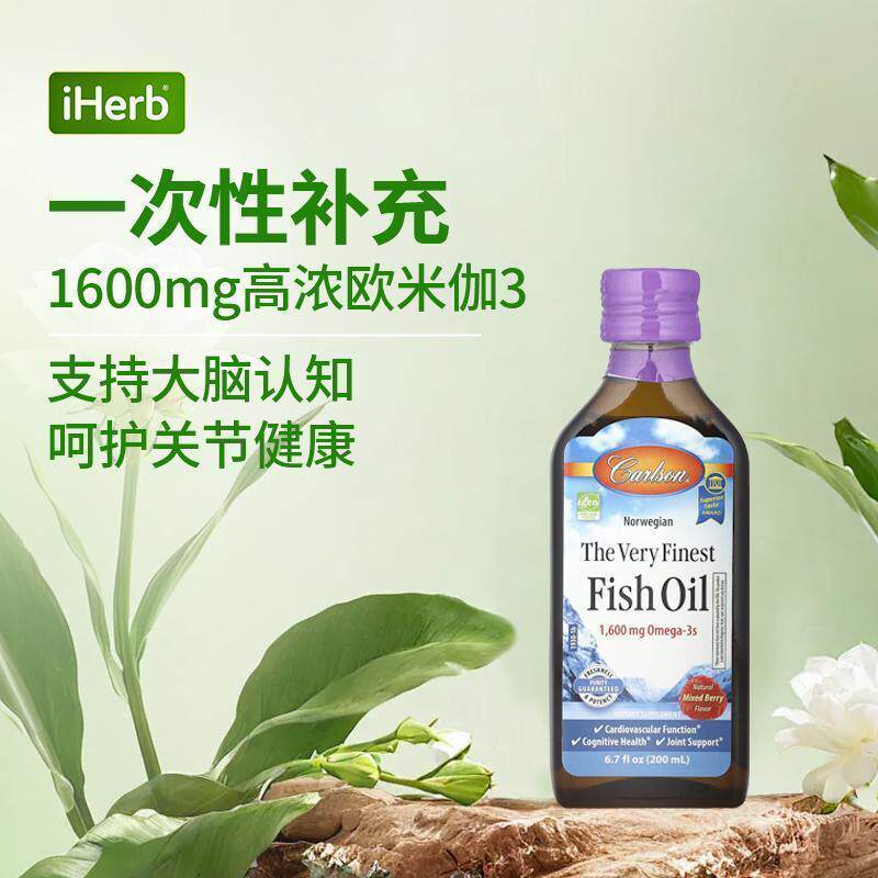 Carlson挪威优质深海野生鱼油天然果味添加DPA维生素E支持大脑心
