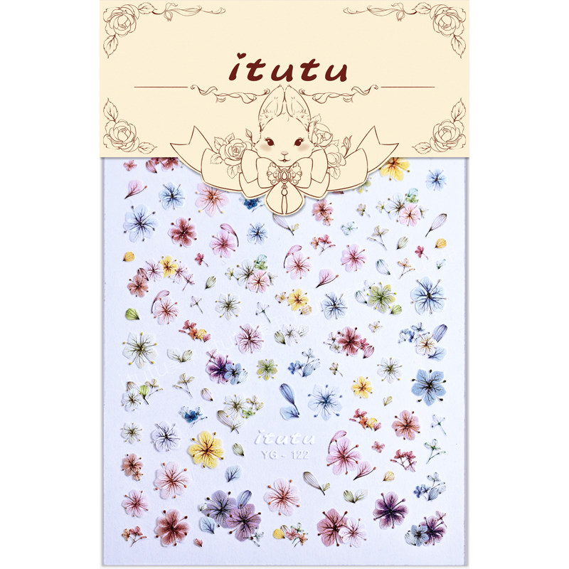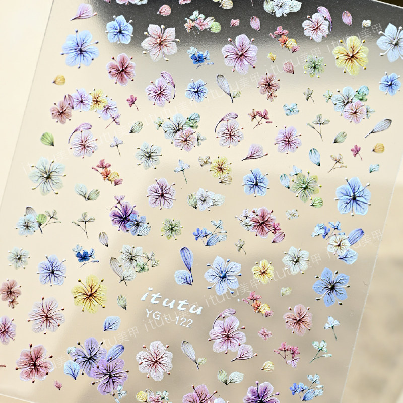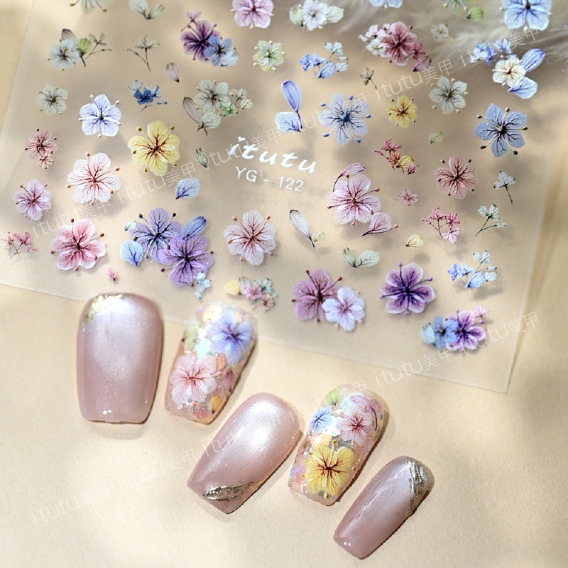 春季繁花似锦高仿真干花微浮雕美甲贴纸彩色立体小碎花元气指甲贴