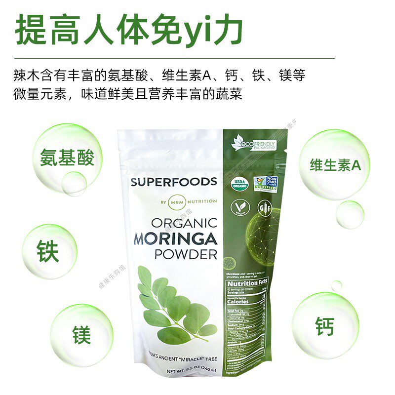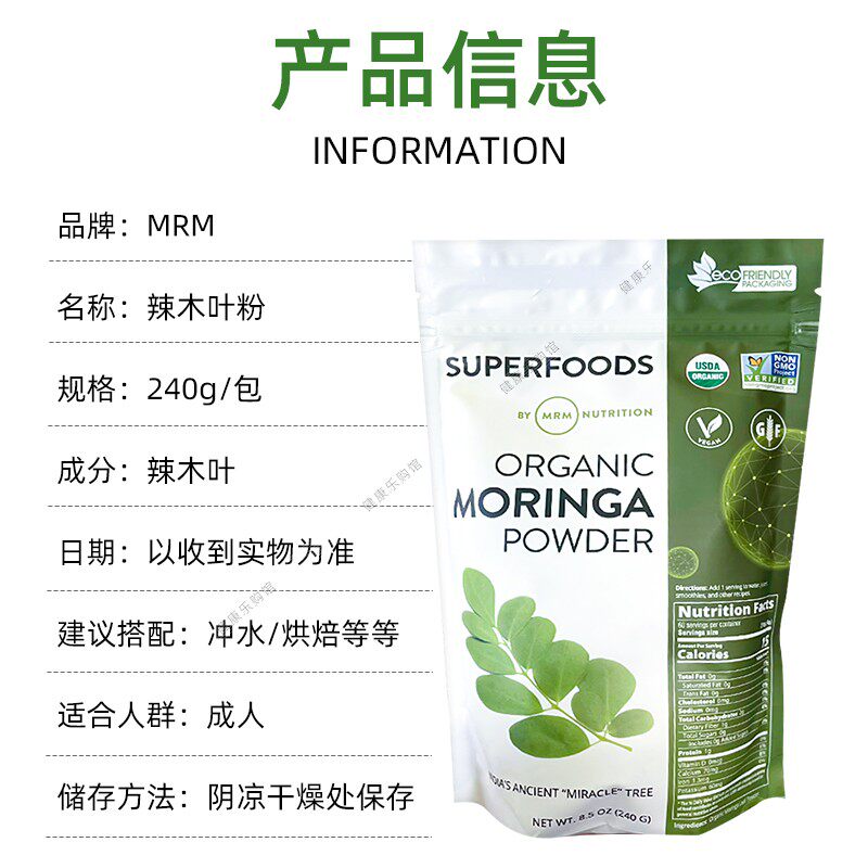 保税现货美国MRM Nutrition辣木叶粉240g印度辣木粉营养粉moringa