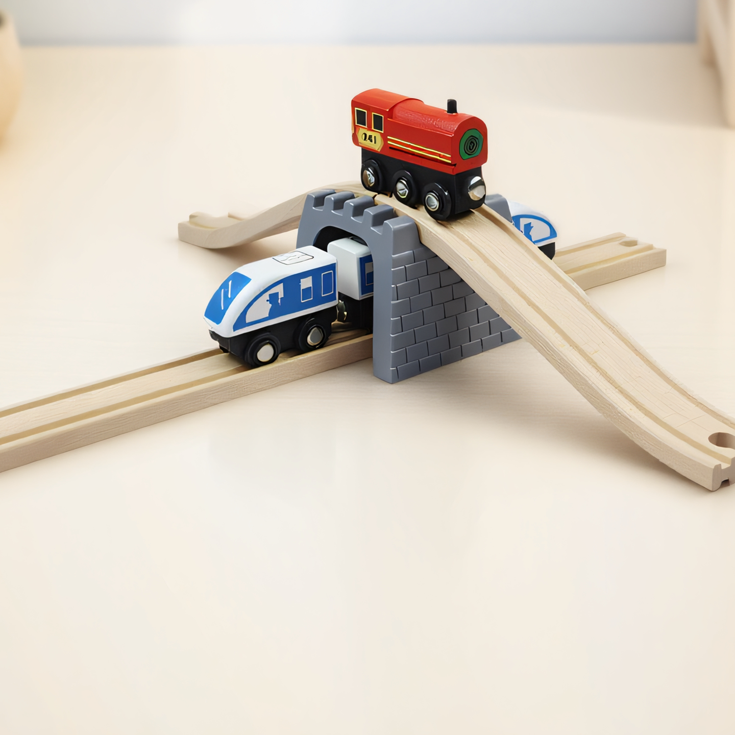 木制玩具火车轨道配件叠加桥墩支架木质轨道车布里奥米兔木头轨道