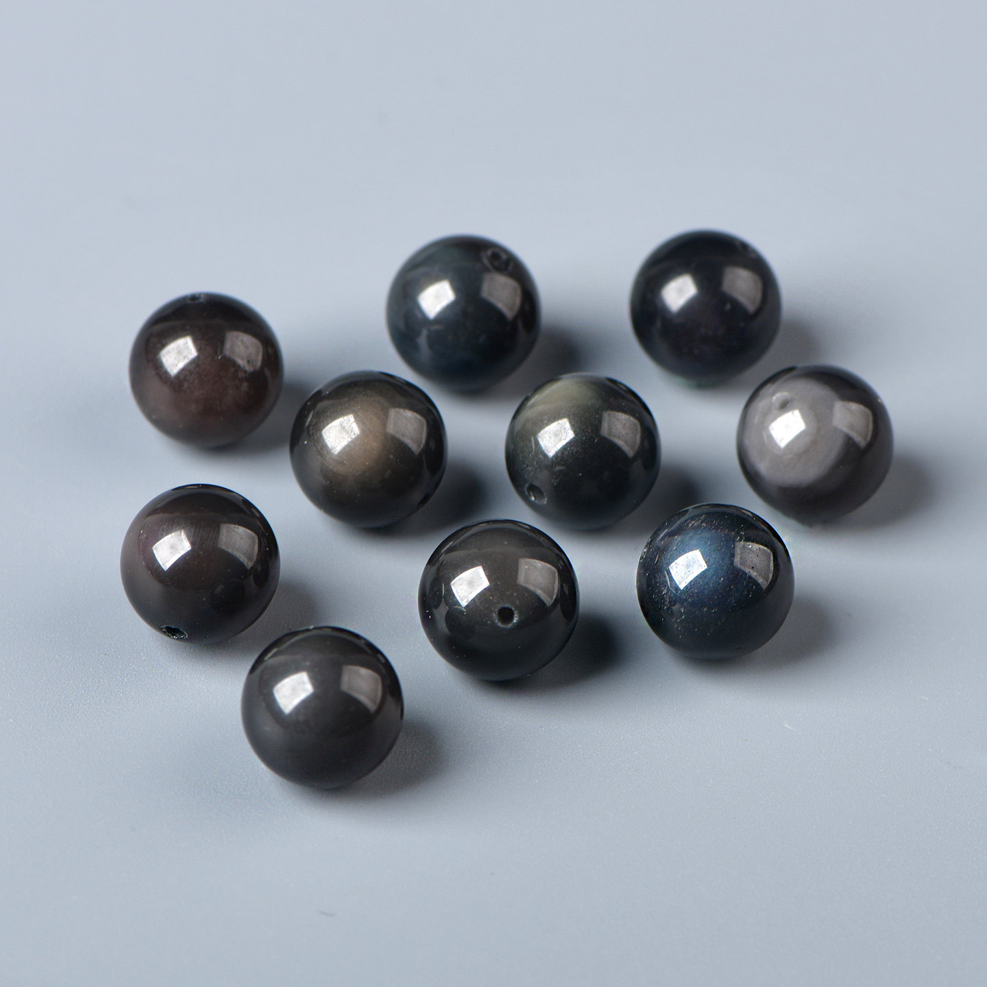 天然金曜银曜彩眼冰曜乌金黑耀石散珠子diy水晶手工饰品配件串珠