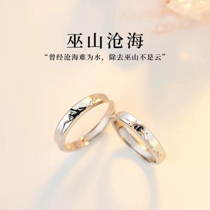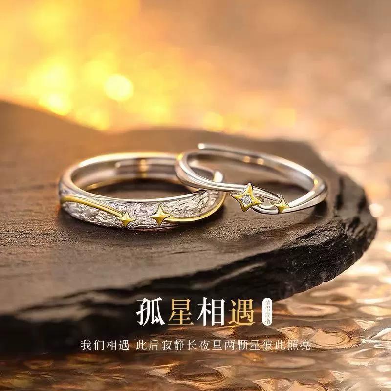新款纯银对戒情侣戒指男女款小众设计日月同辉高级感开口可调节