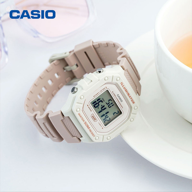casio卡西欧小方块手表女士正品防水运动学生儿童电子表W-218HC-4