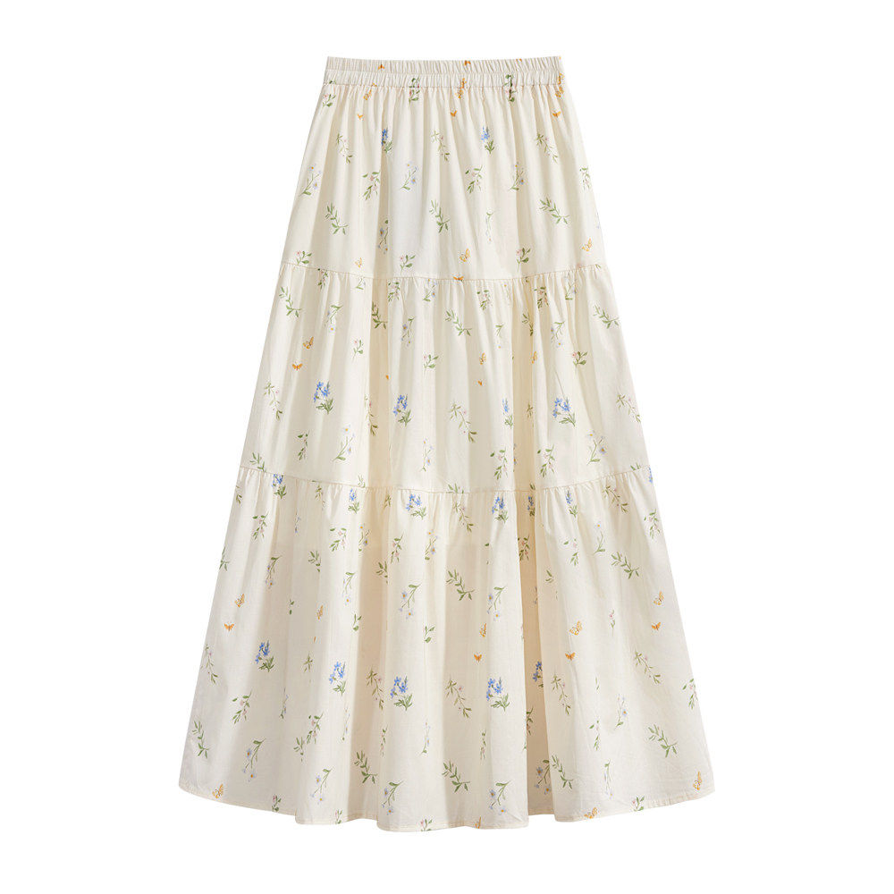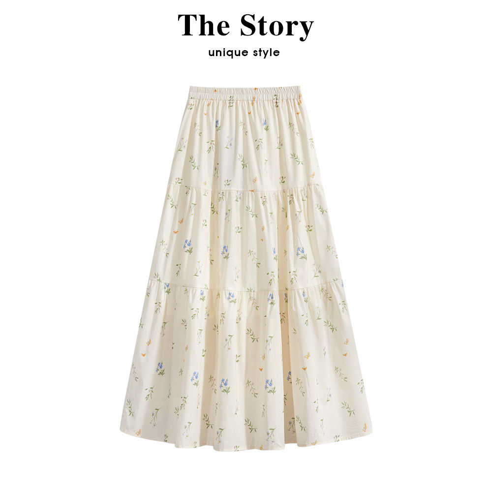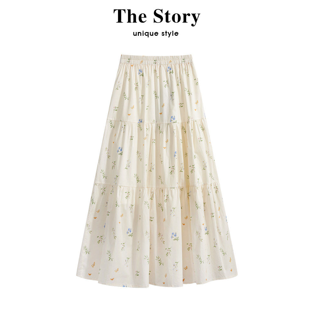 那些事衣橱松紧腰碎花半身裙女2025夏季新款覆古高腰显瘦A字长裙