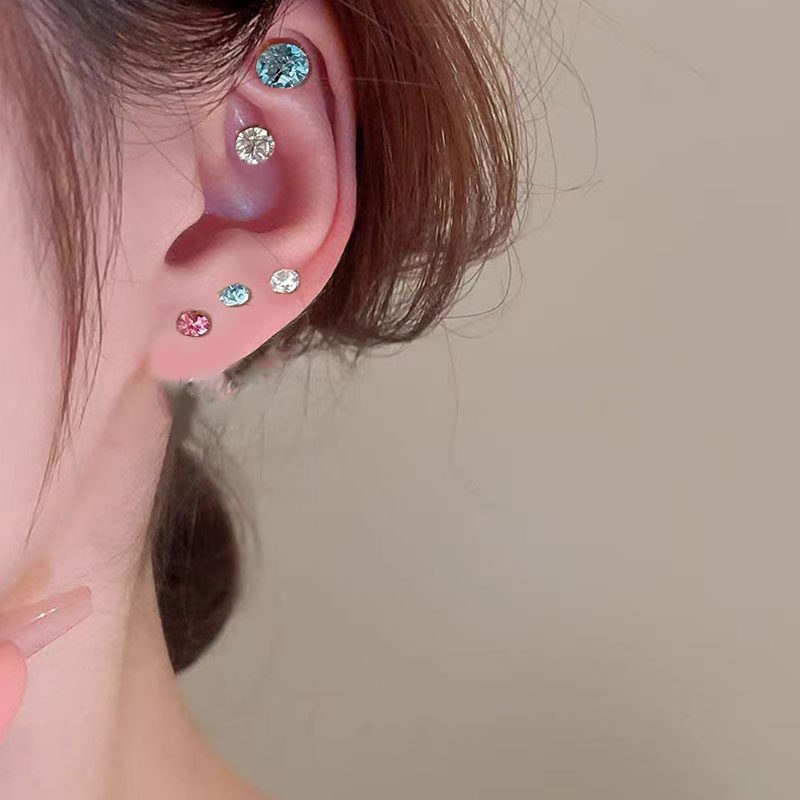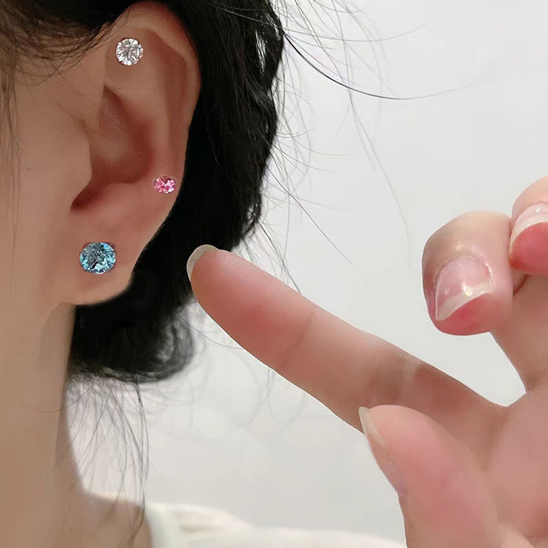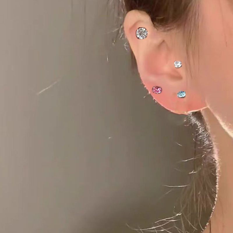彩色锆石耳钉女华子彩钻高级感耳饰2024新款粉色耳骨钉耳蜗钉耳环