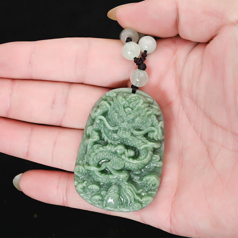 天然珠宝缅甸翡翠玉龙牌吊坠龙腾四海挂件玉石龙形玉器男霸气玉佩