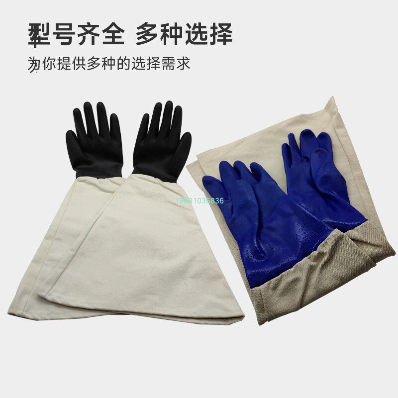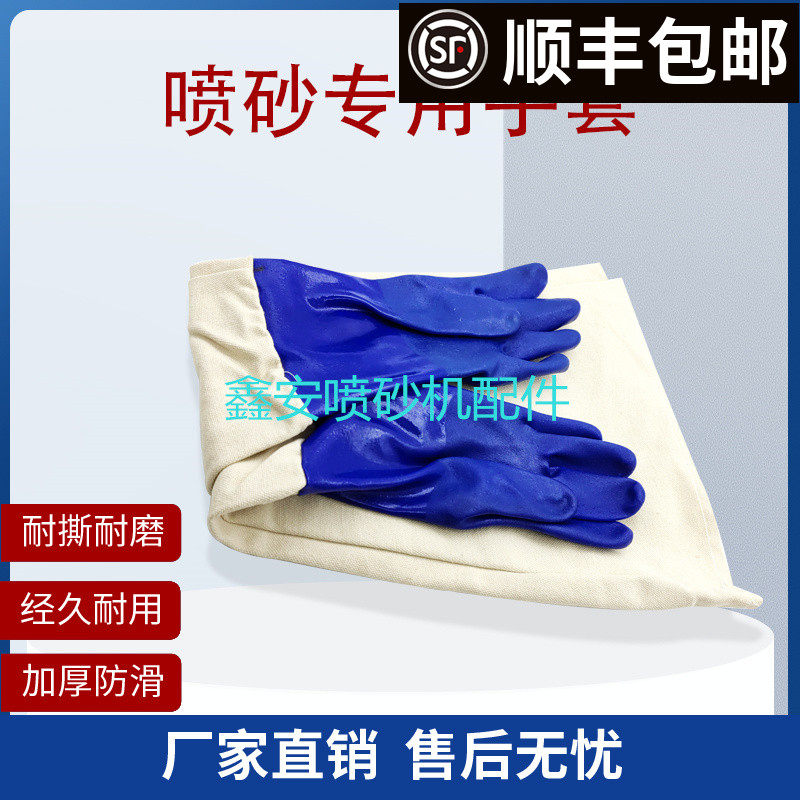 箱式喷砂机手套加厚防护橡胶拼接喷沙袖套颗粒光面皱纹乳胶手套