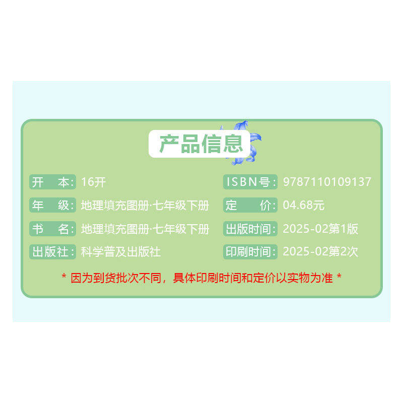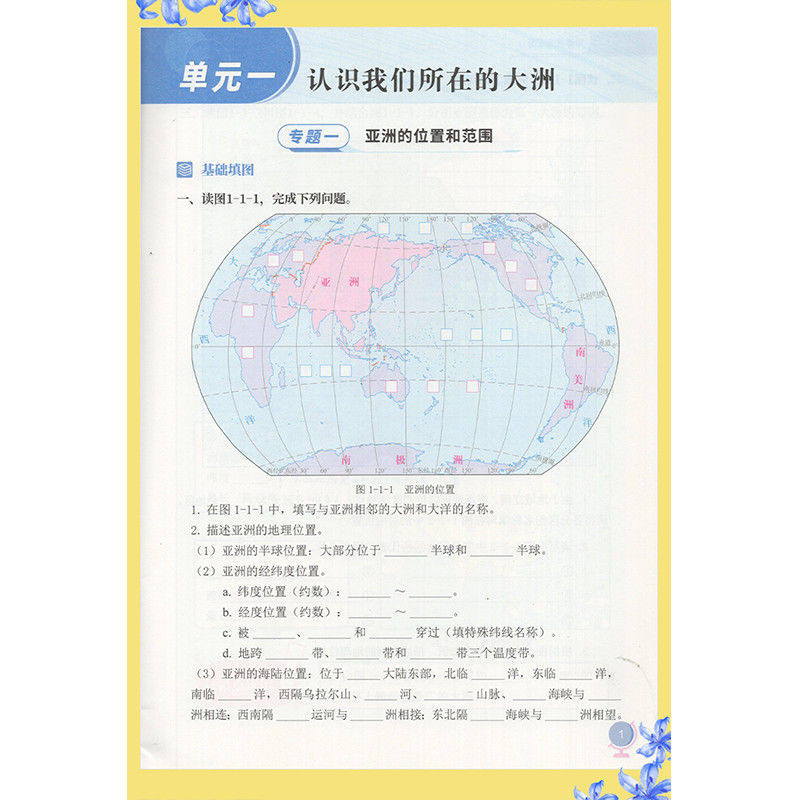 2026适用 正版书籍 地理填充图册7七年级下册 科学普及出版社
