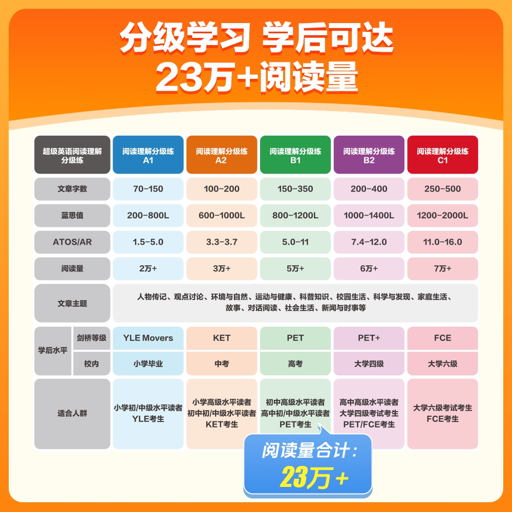 【新东方官方】超级英语阅读理解分级练小学初中中考英语阅读理解提分特训人物传记自然环境生活知识中小学生英语阅读神器