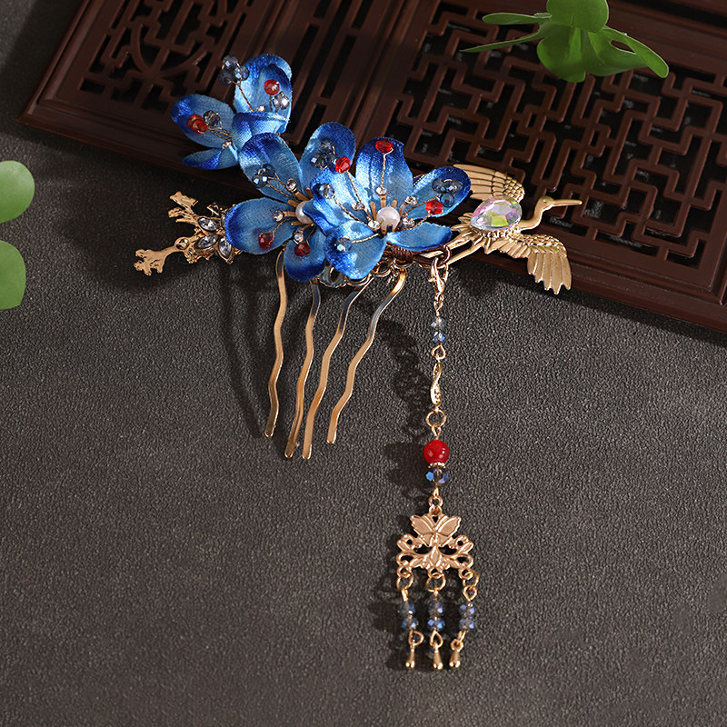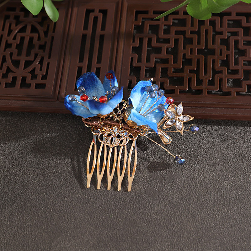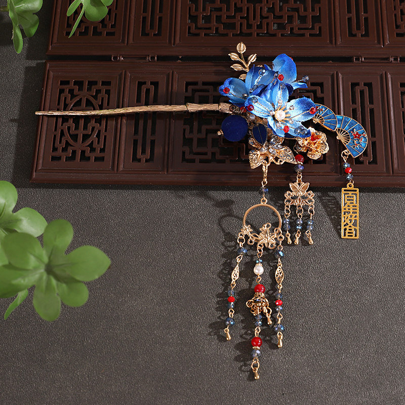 新款中式古风秀禾头饰汉服流苏新娘蓝色结婚小众发饰配饰婚礼发簪