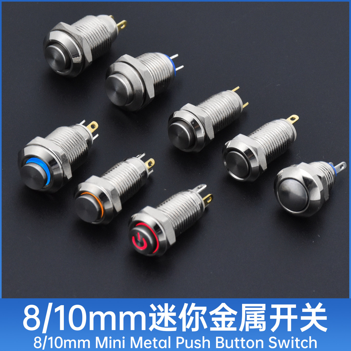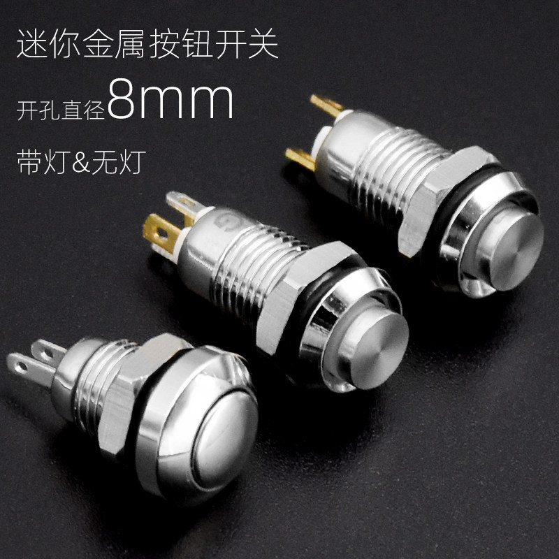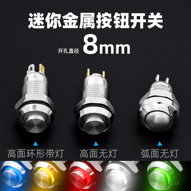 迷你8/10mm金属按钮开关点动自锁复位高平头脚微小圆形LED灯按键
