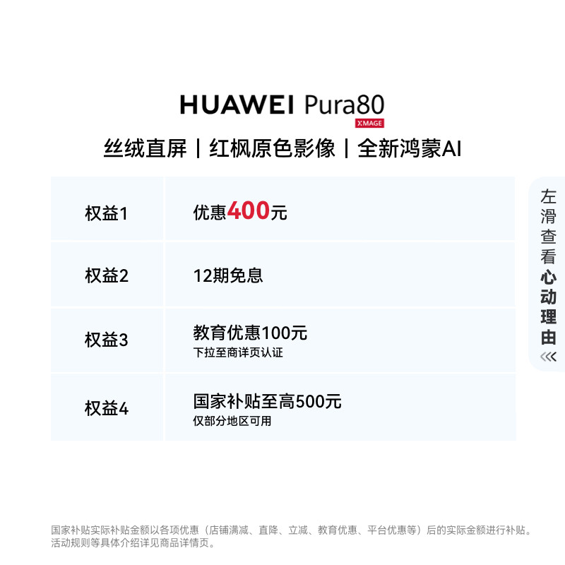 【12期免息】HUAWEI Pura 80 丝绒直屏红枫原色影像鸿蒙AI北斗卫星消息华为手机华为官方旗舰店国家补贴
