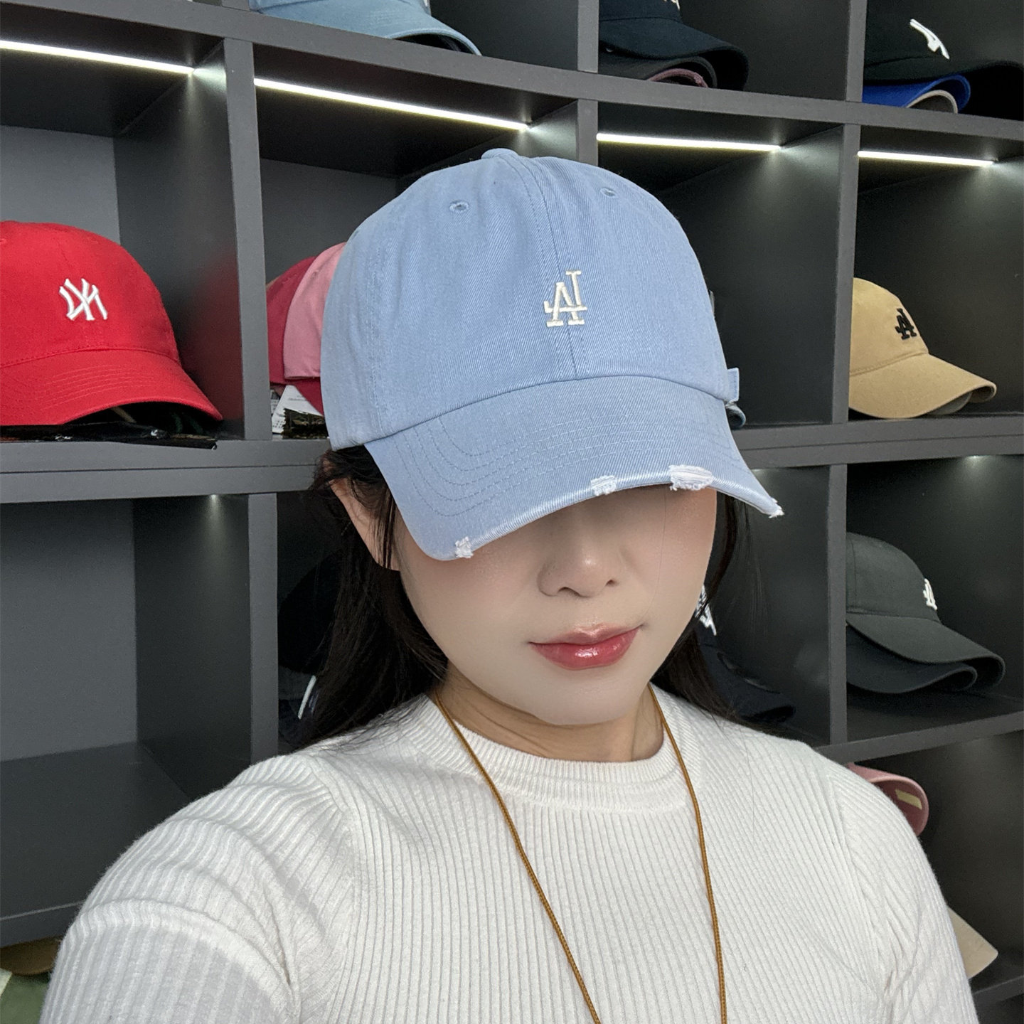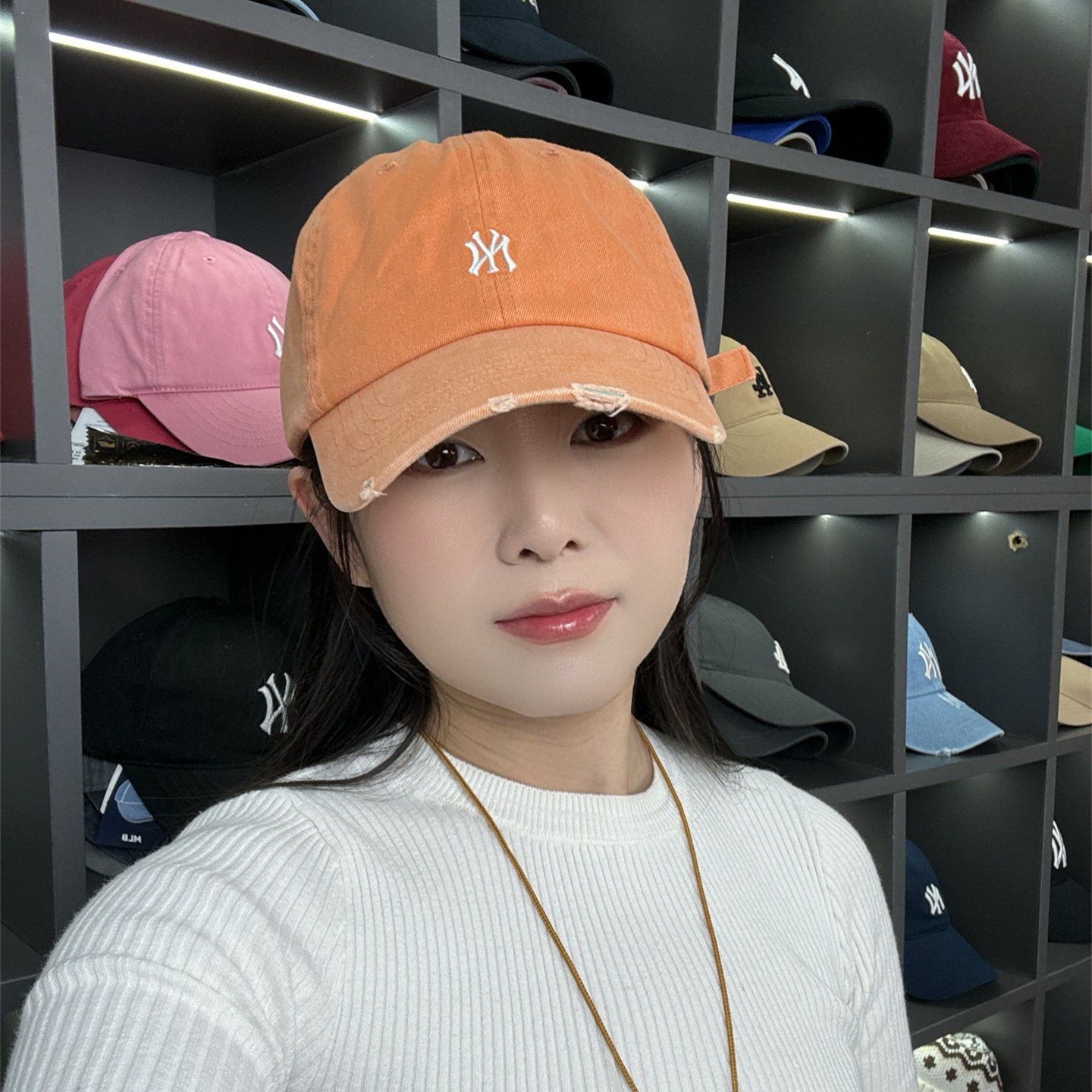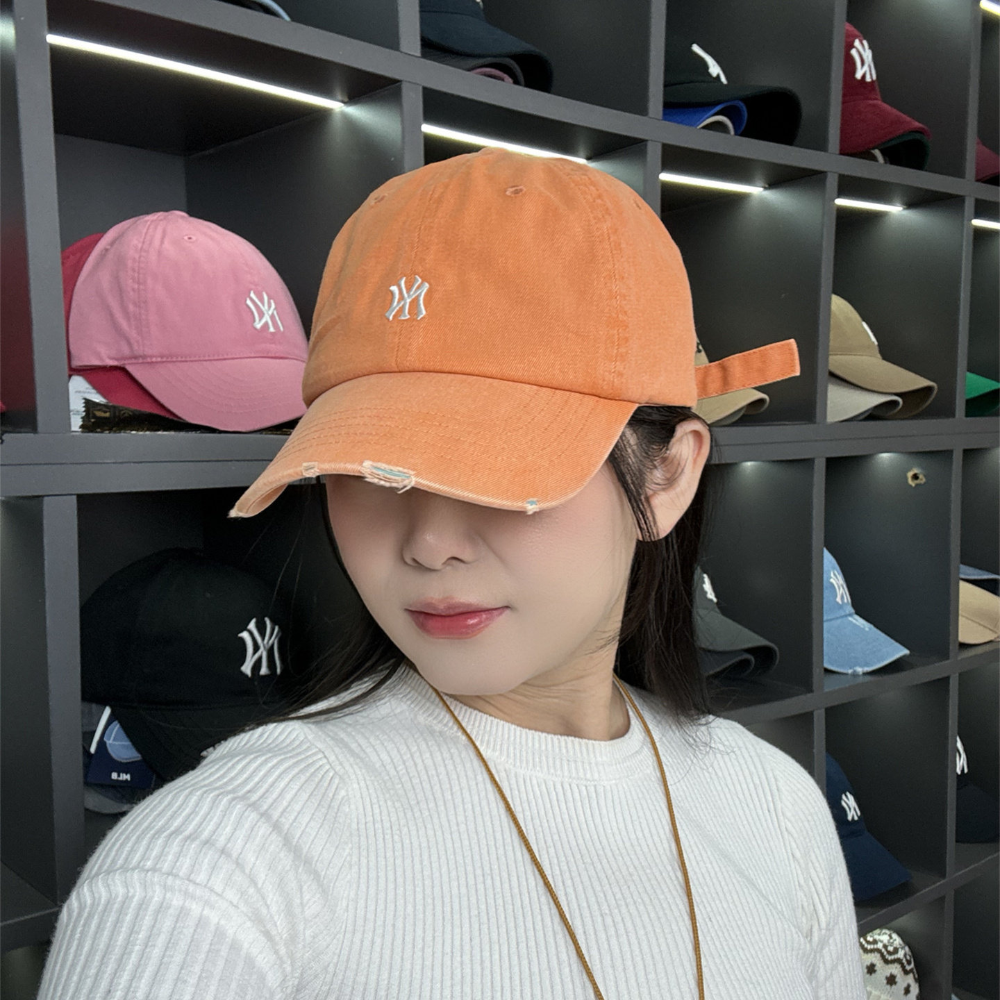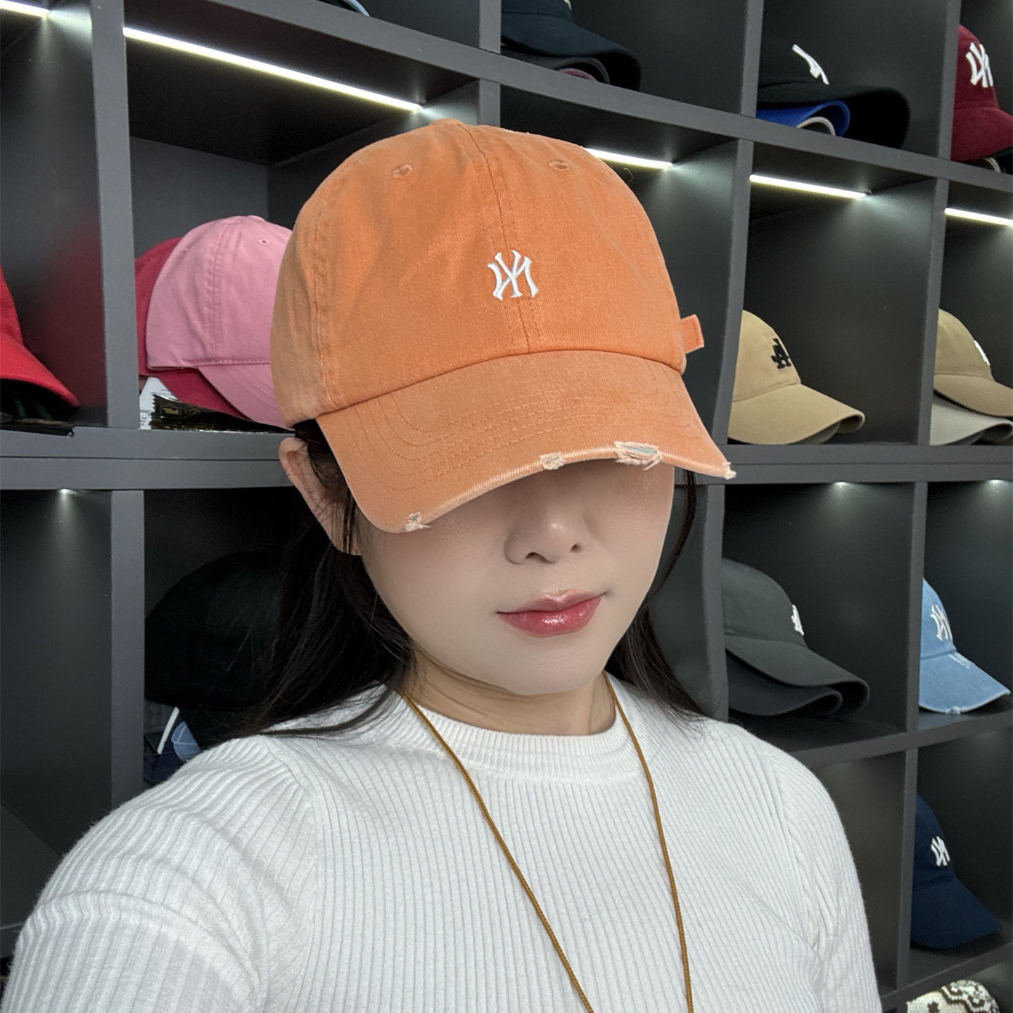 MLB帽子韩国正品男女情侣刺破洞休闲运动NY硬顶棒球帽新款鸭舌帽