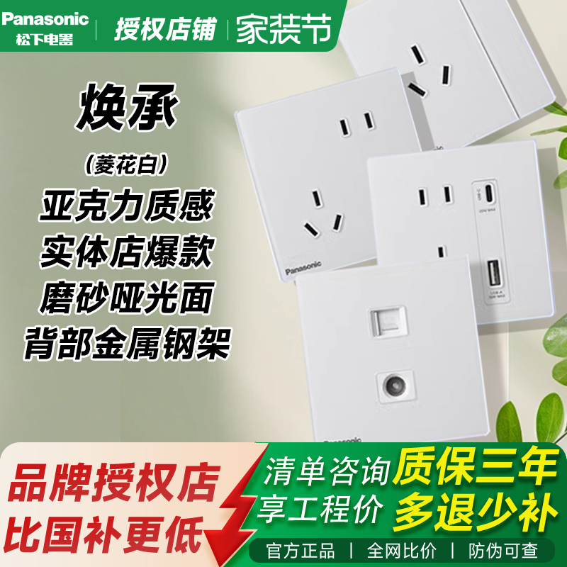 松下焕承面板菱花白开关插座家装86型五孔/一开五孔/一二三四开