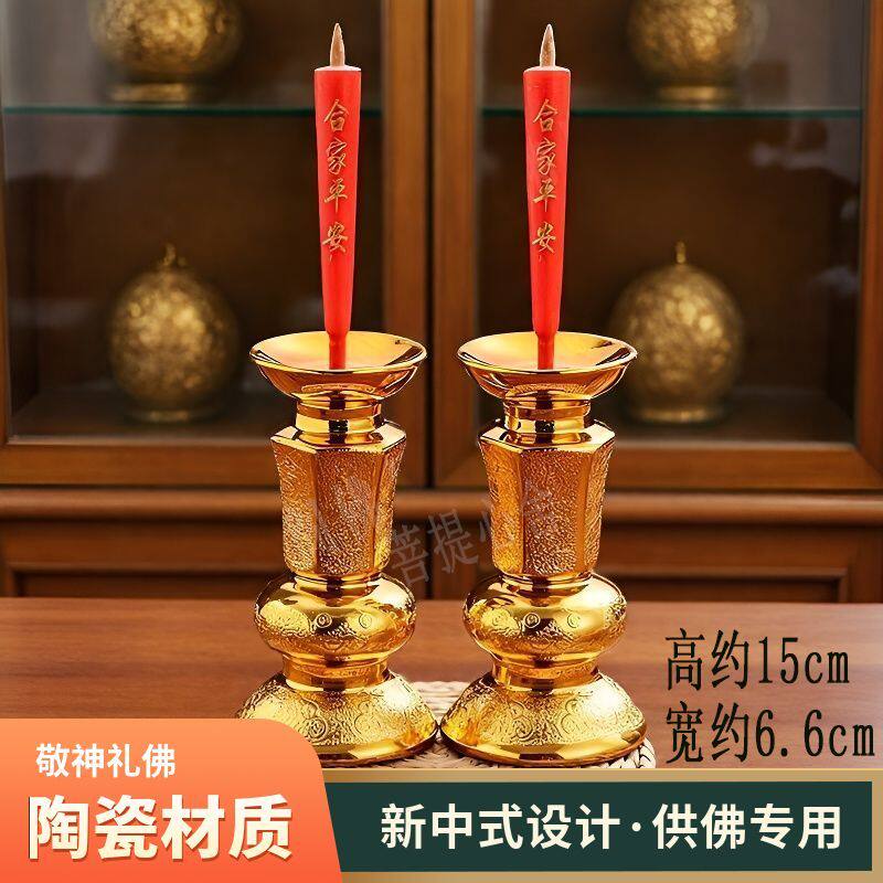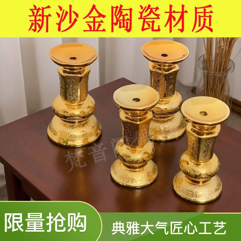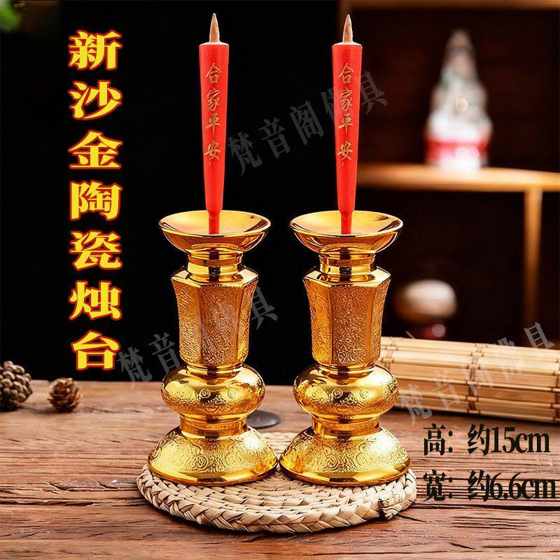 新沙金陶瓷烛台座一对敬神烛台家用蜡烛台底座庙里专用蜡烛台摆件