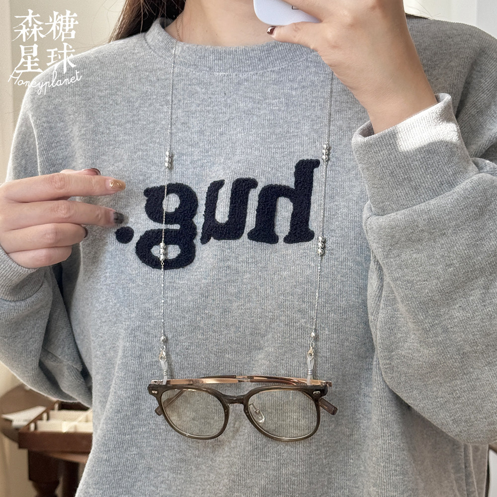 森糖原创*手工制灰珍珠挂脖眼镜链925银镀金墨镜口罩防掉链高保色