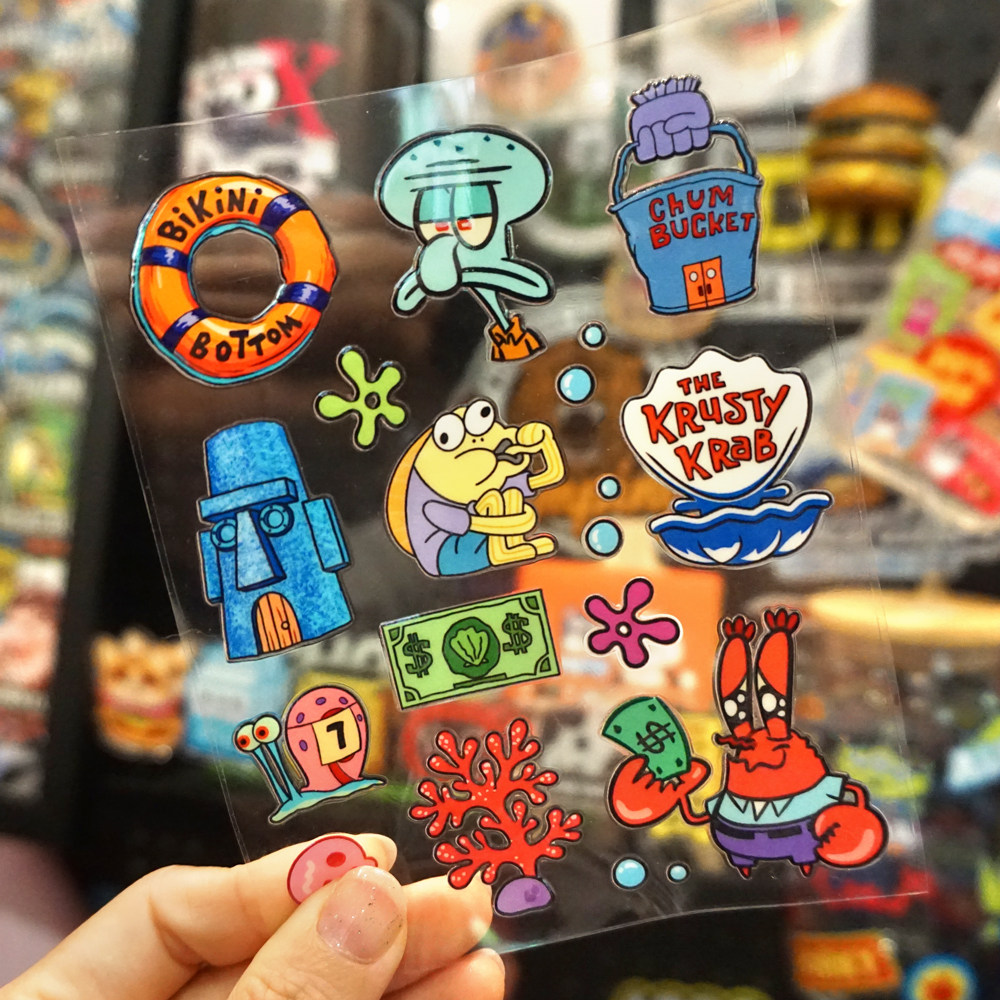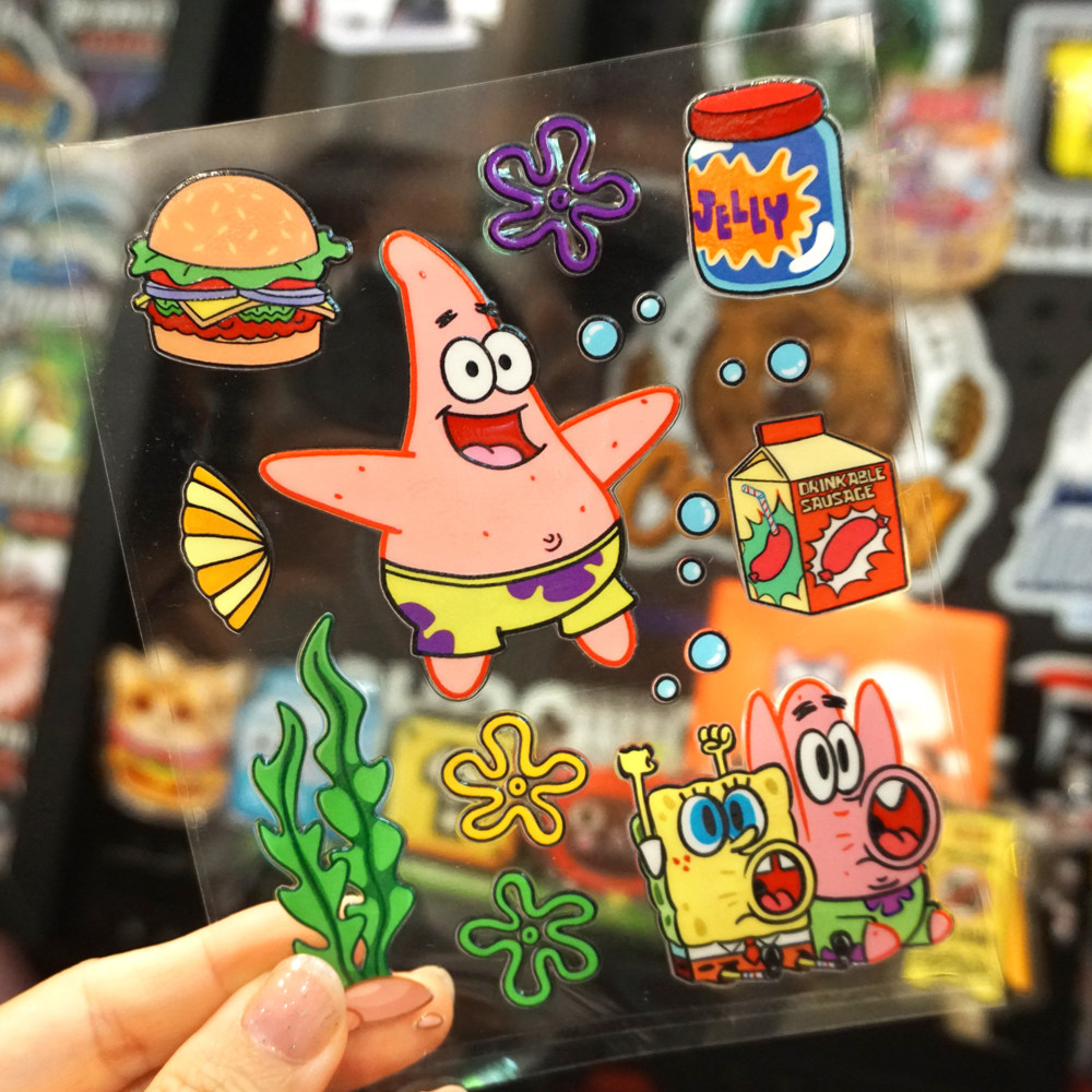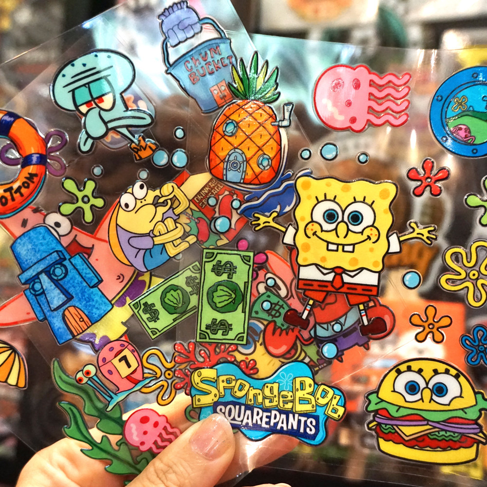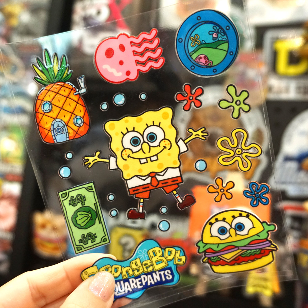 卡通海绵宝宝水晶标动画贴纸水杯uv转印贴汽车电动车冰箱金鱼缸贴