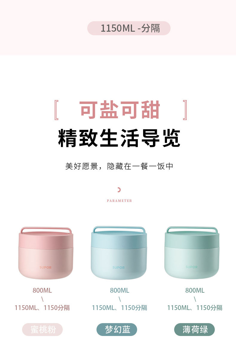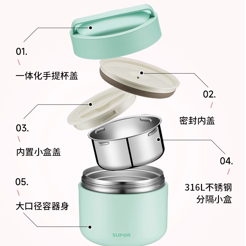 SUPOR/苏泊尔316L不锈钢保温饭盒分层学生上班族便携保温便当盒桶