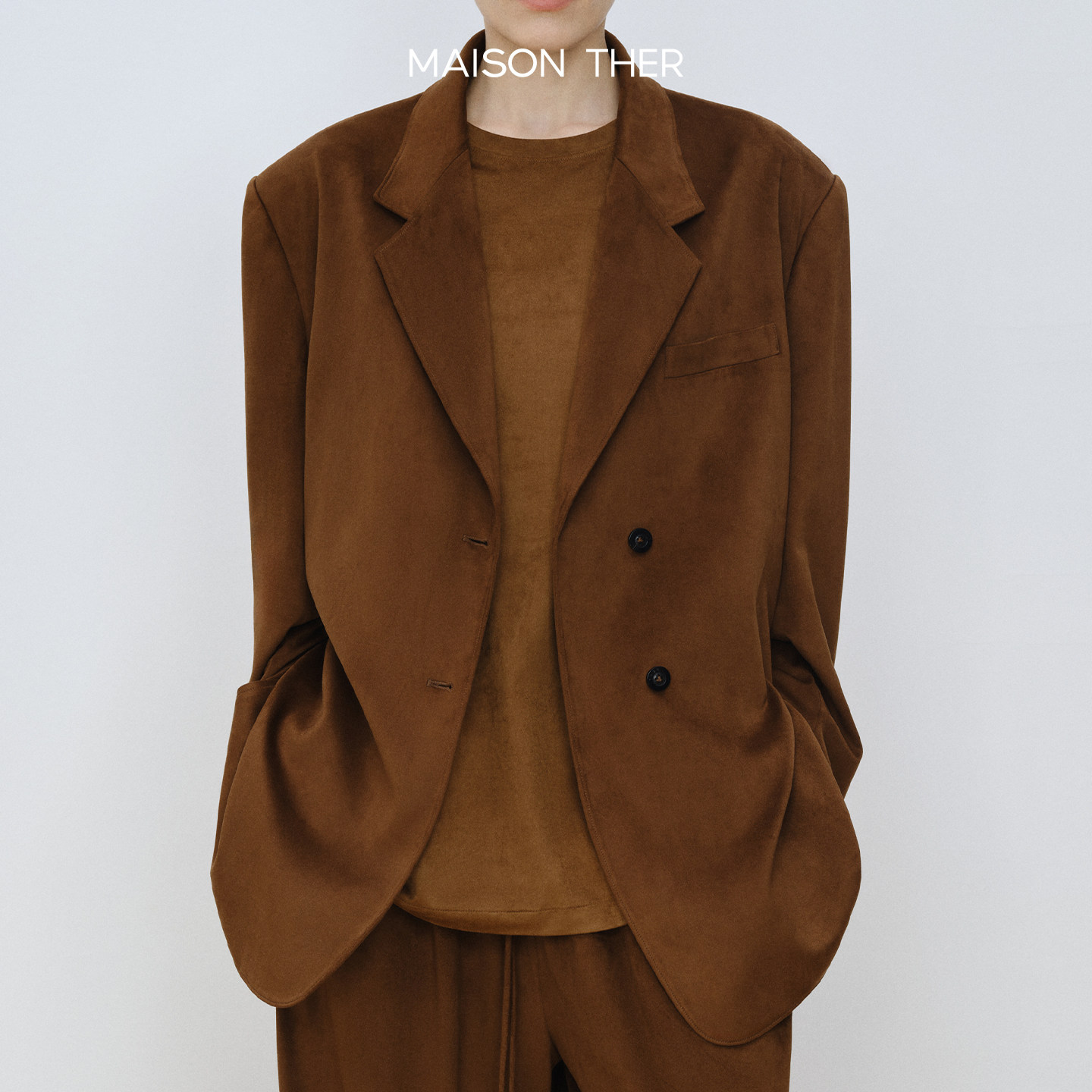 MAISON THER【25秋冬】立裁麂皮感男友式宽肩西装夹克大气廓形款