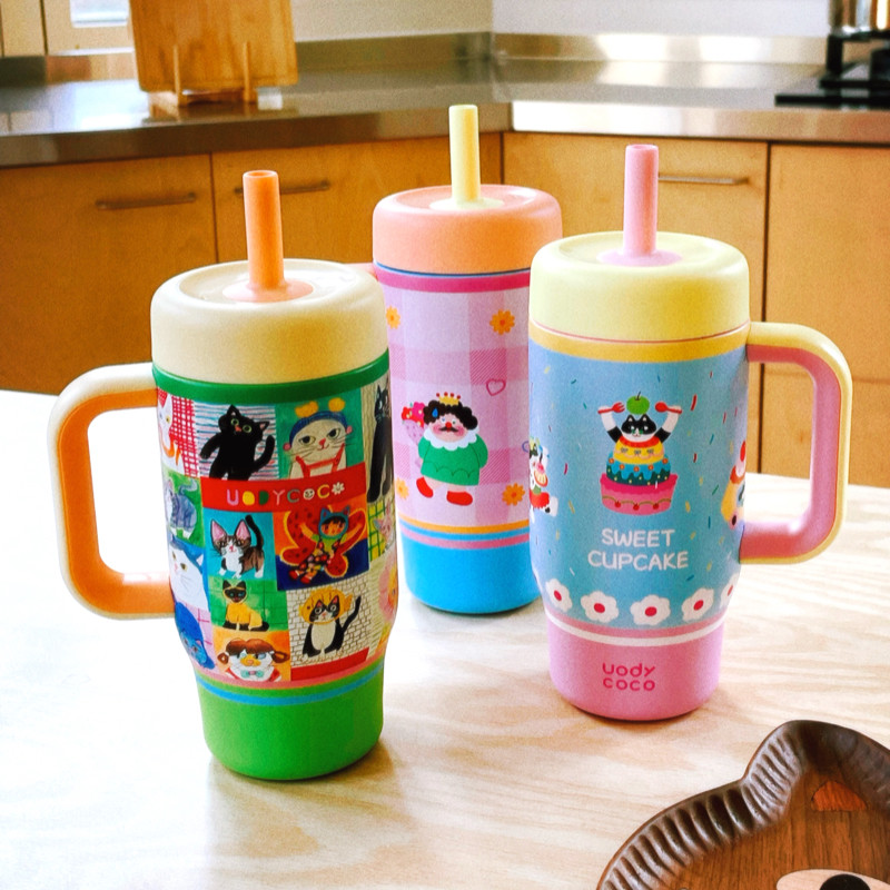 uodycoco可爱吸管杯保温卡通日式猫咪图案便携式保冰杯办公杯子