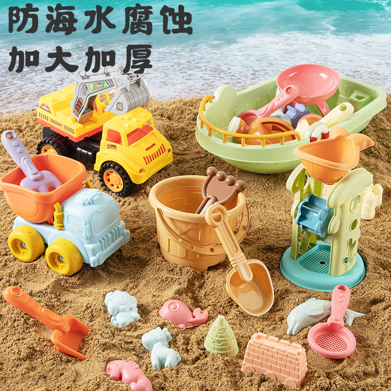 儿童加厚沙滩玩具套装玩沙决明子挖沙铲子工具宝宝戏水桶推车玩具