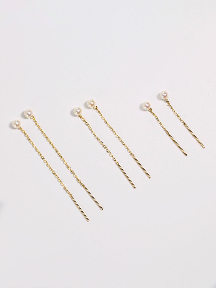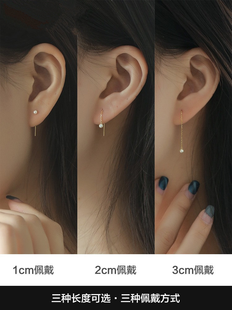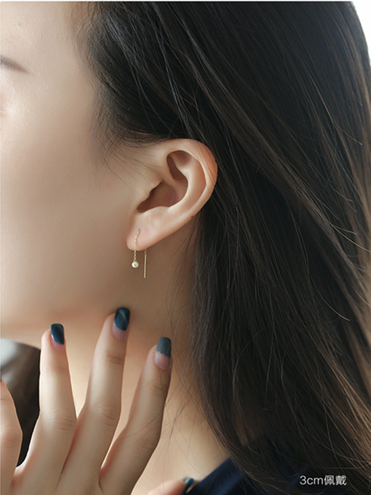 新款简约超迷你小巧珍珠女耳线纯银镀14k金长款百搭气质高级耳坠
