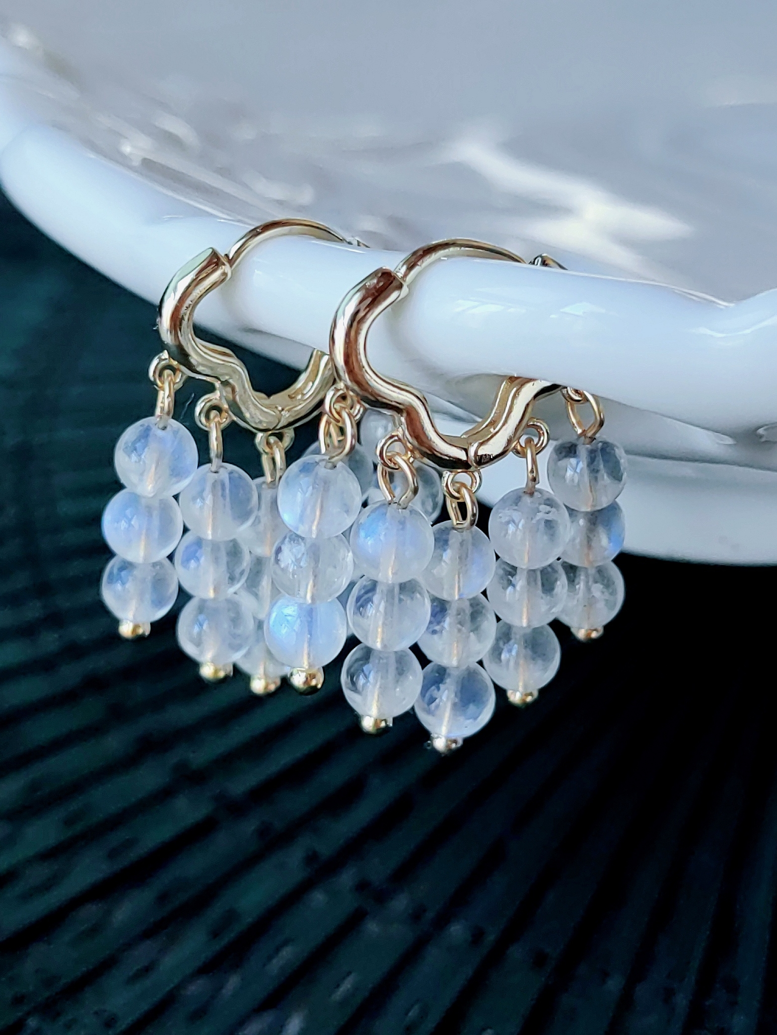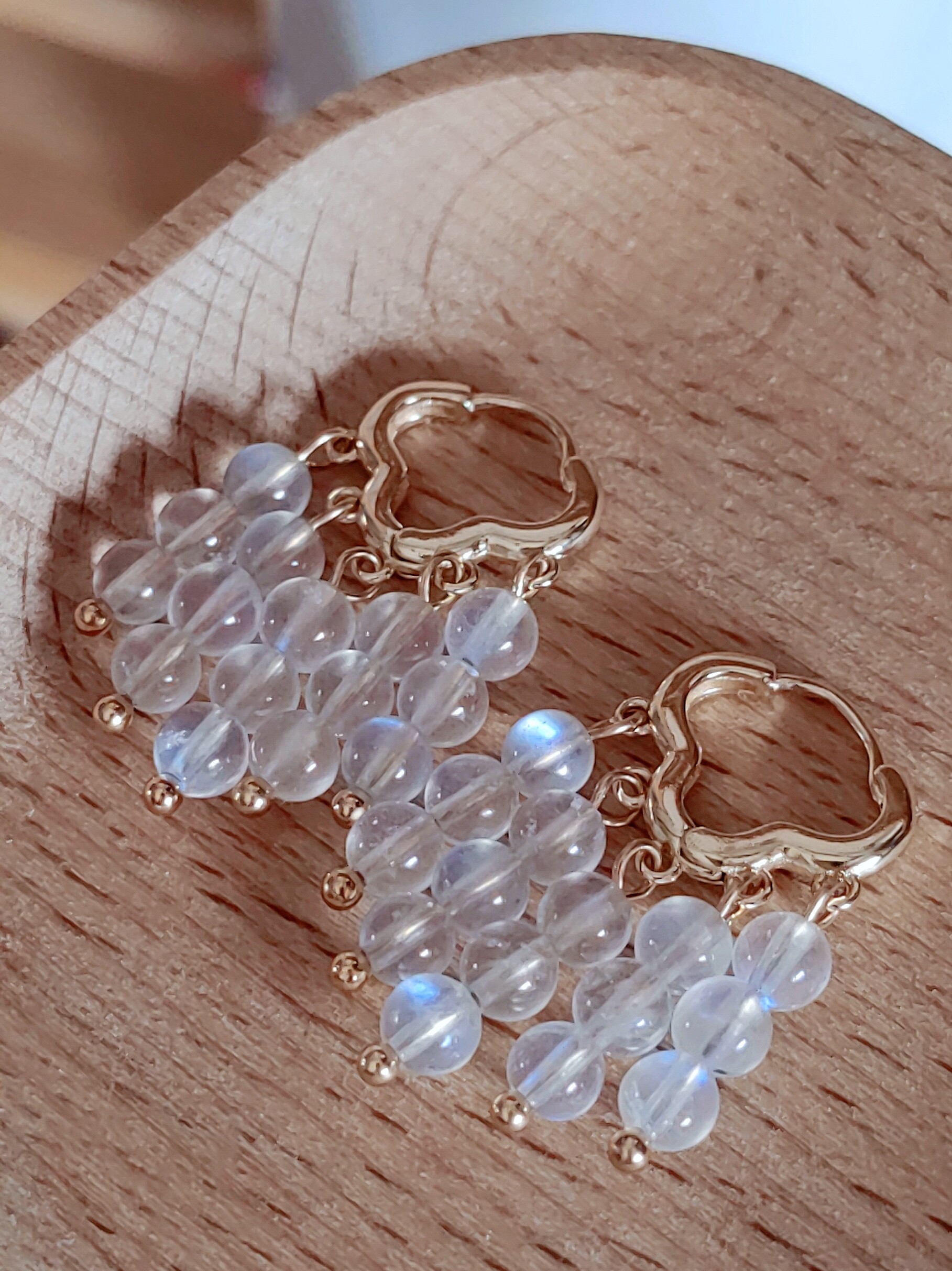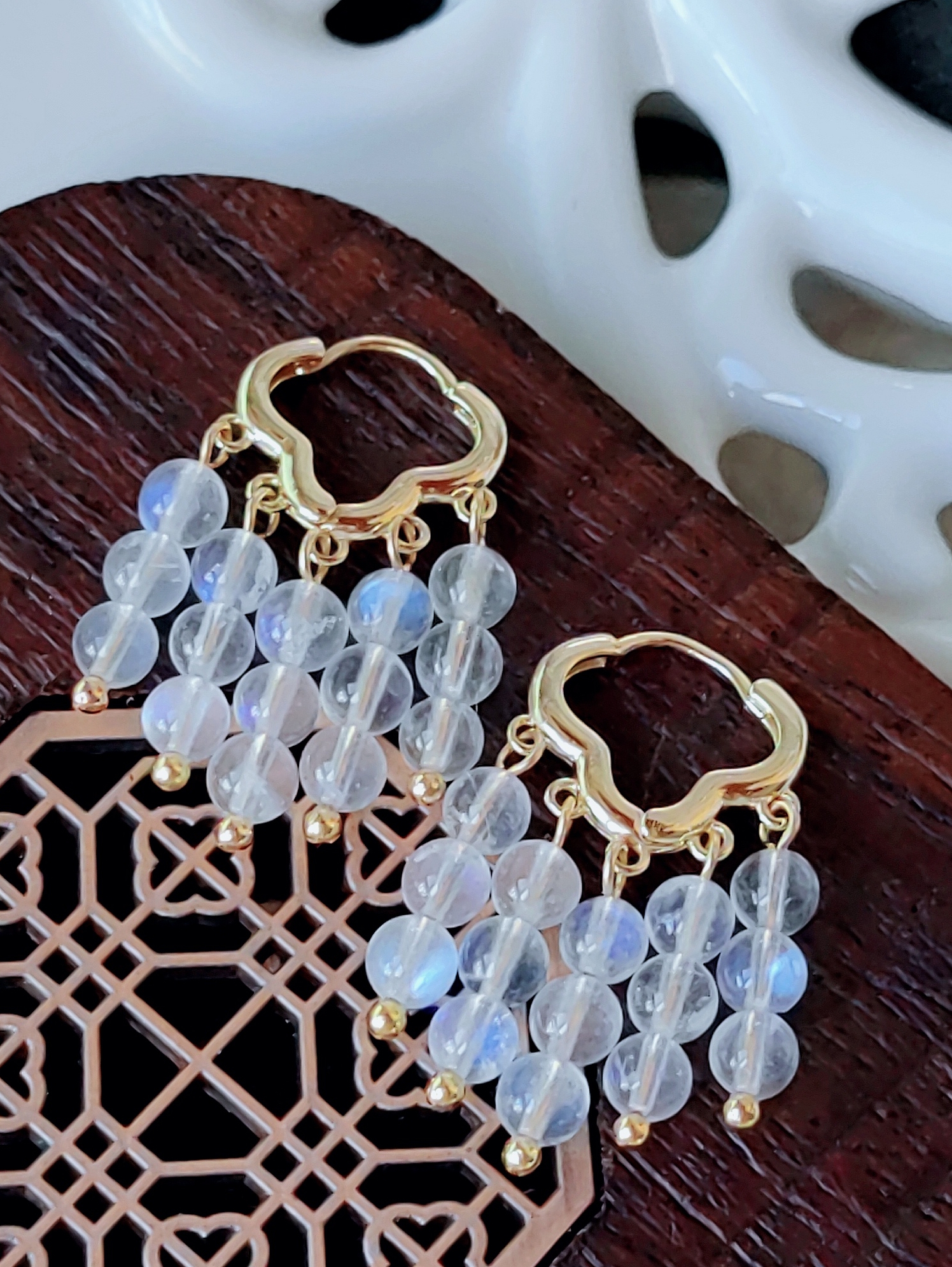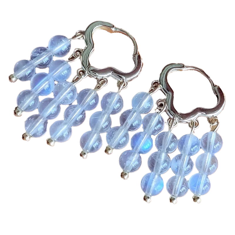 天然蓝月光耳环强光冰种月光石耳坠气质女神高贵仙气飘飘流苏耳饰