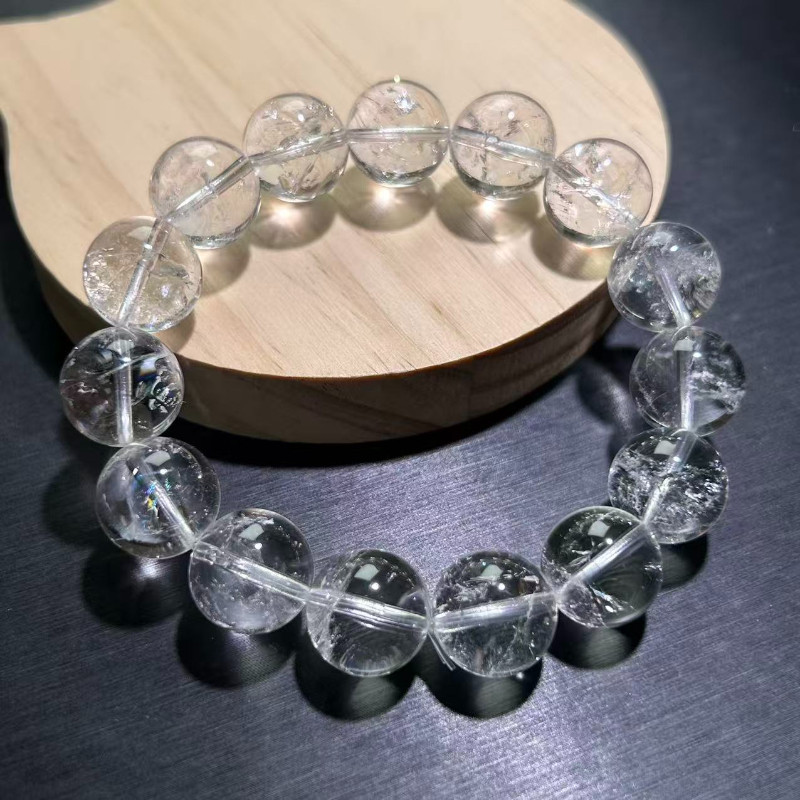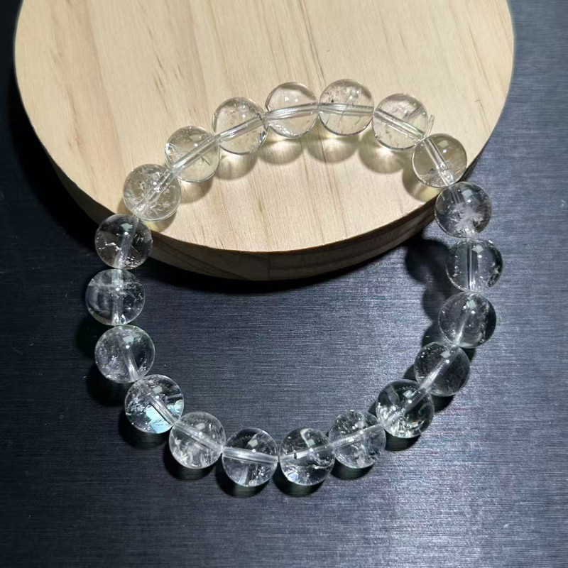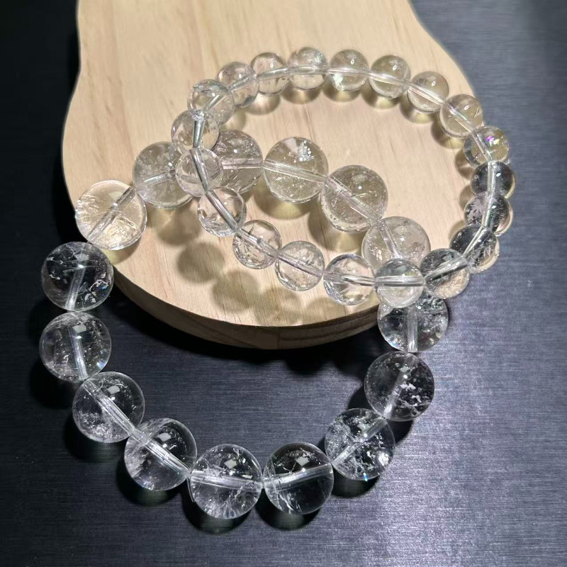白水晶手串白阿塞手链天然水晶冰透闪百搭白幽灵手链珠串男女手串