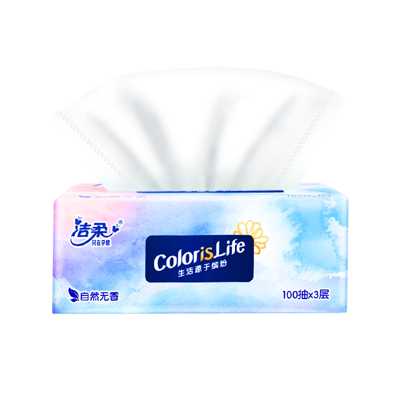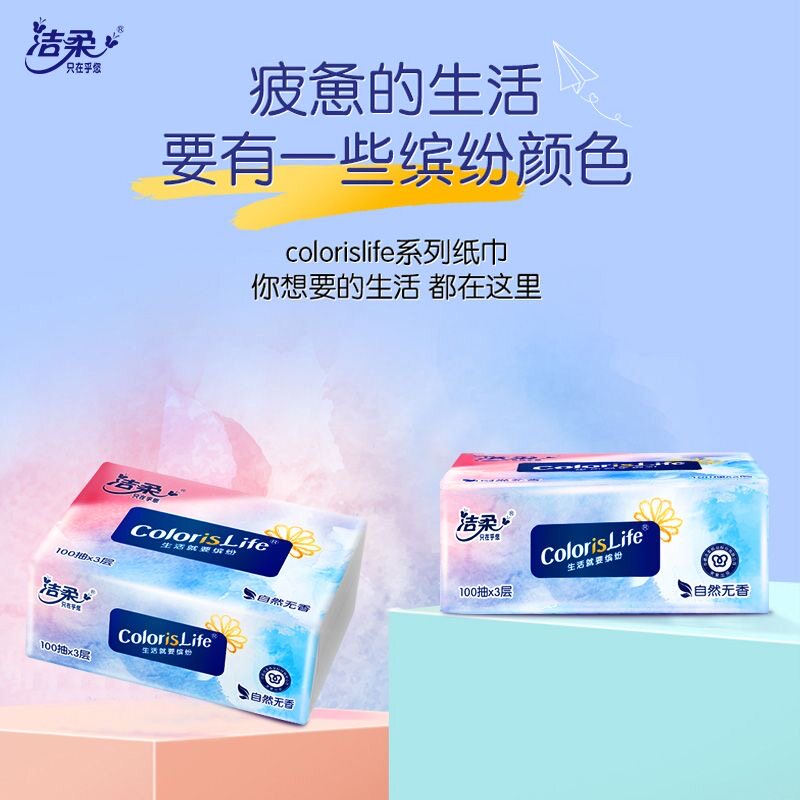 洁柔缤纷系列面巾纸3层100抽实惠餐巾纸卫生纸巾宿舍家用抽纸-MS