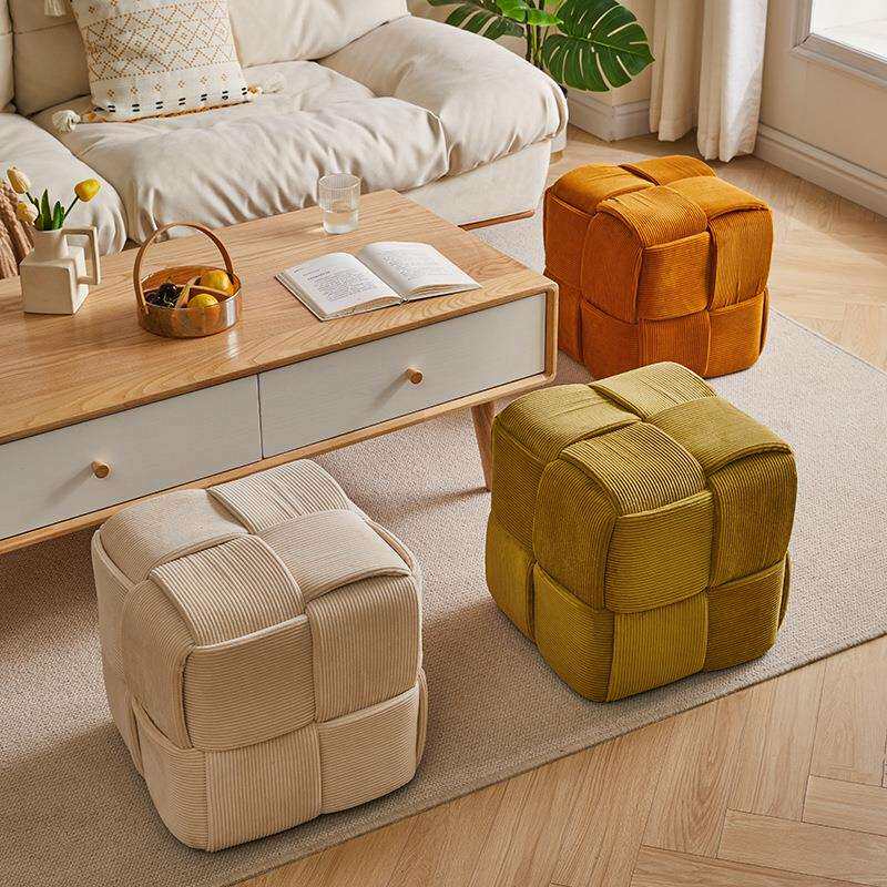 家逸创意编织凳子板凳实木沙发凳家用方凳矮凳茶几凳