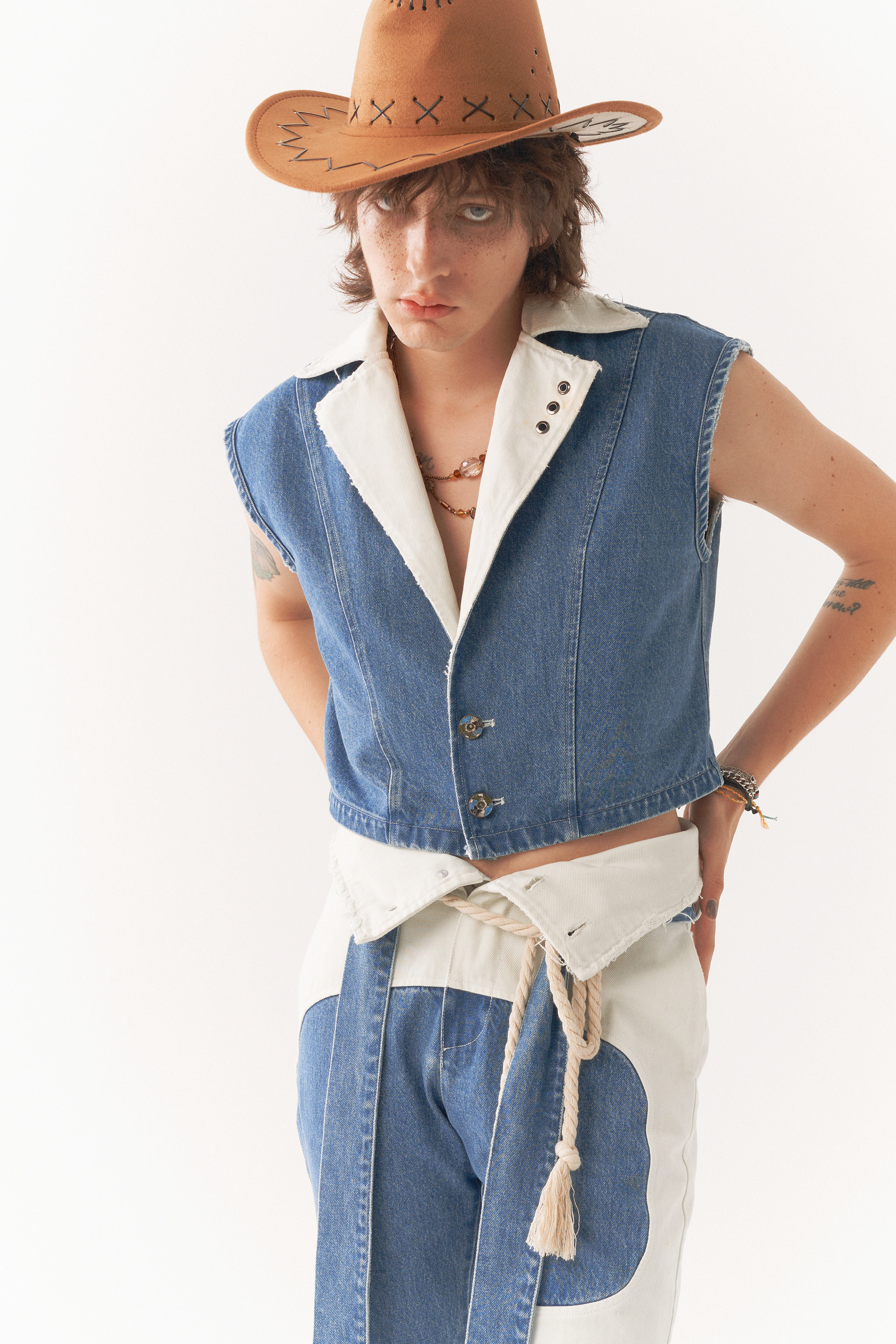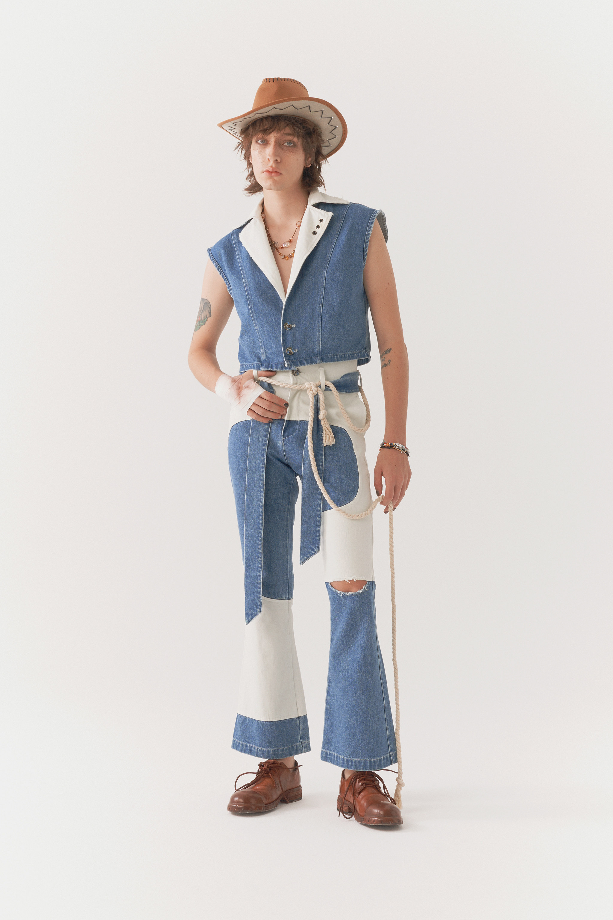 INCOG清仓不退夏日音乐节 黄明昊同款 原创无性别拼接牛仔上衣
