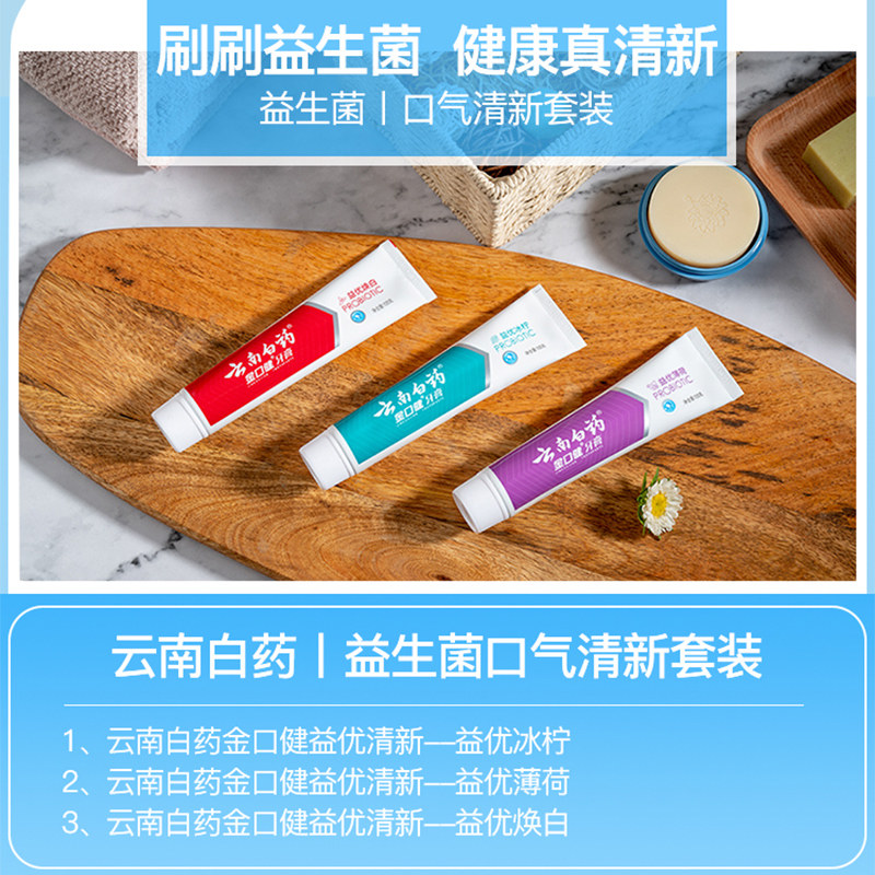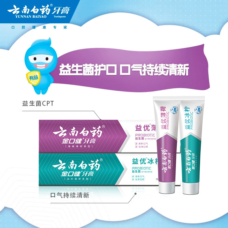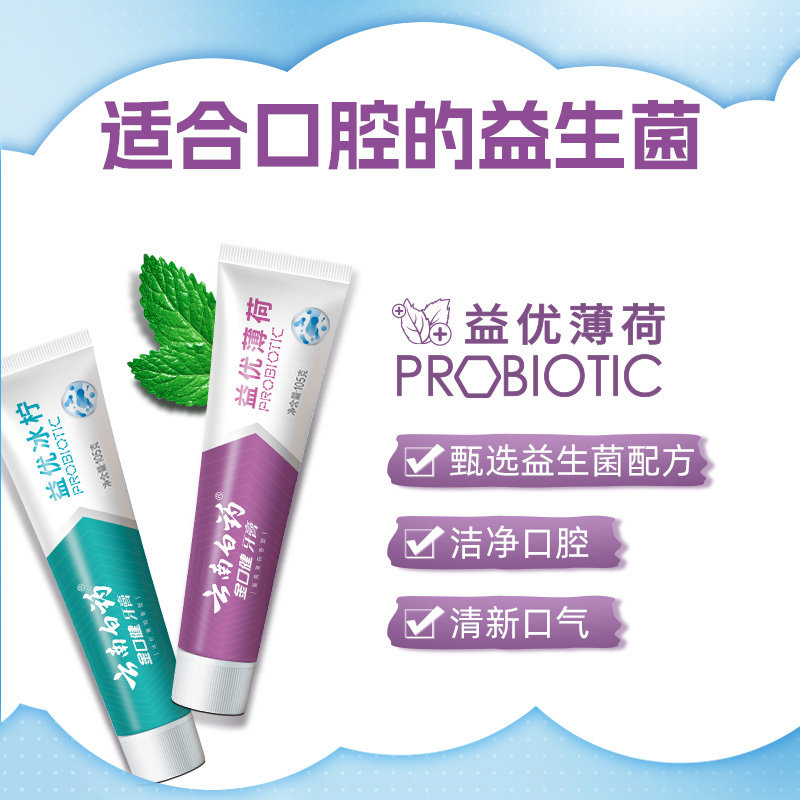 云南白药牙膏145g金口健优益薄荷香型清新口气清洁牙齿益生菌正品