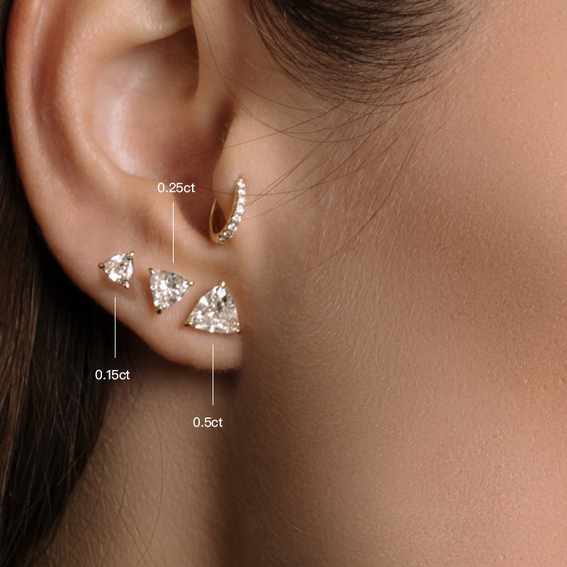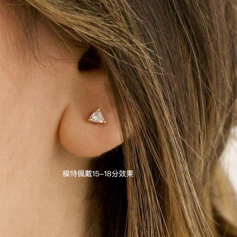 【培育】VRAI/芮爱 极简爪镶三角钻石真钻耳钉耳饰单钻18K金国检