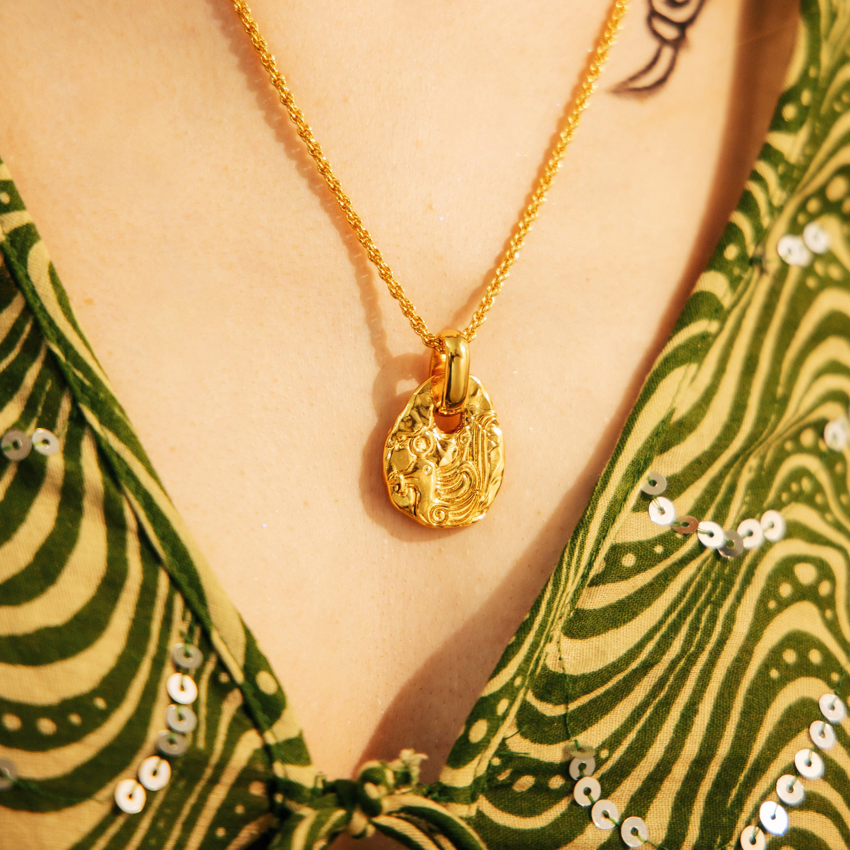 飞鸟 18K重镀金铜凤鸟钱币项链复古三星堆情侣男女定制情人节礼物
