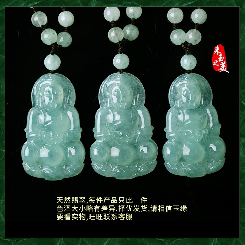 天然翡翠玉观音吊坠男士玉坠菩萨项链缅甸A货冰种玉石挂件玉佩