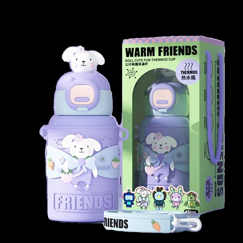 卡通公仔萌宠儿童316不锈钢底保温杯学生水杯吸管杯抱婴袋杯套直