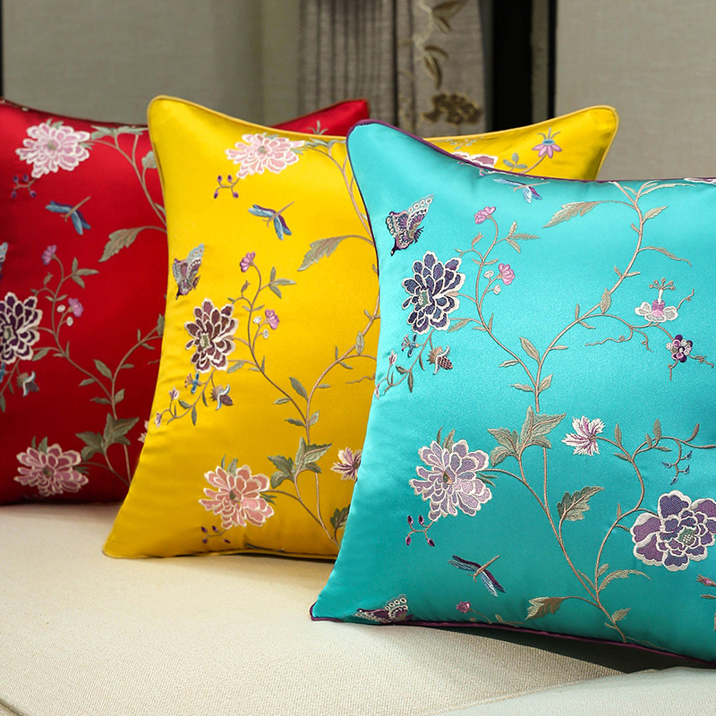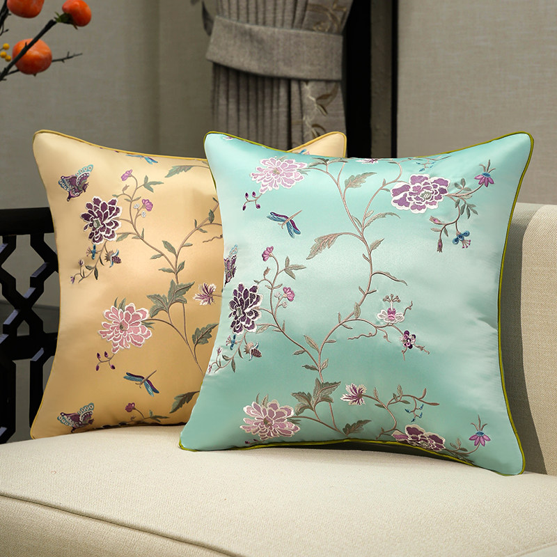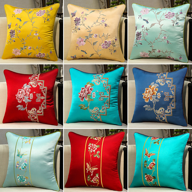 定制中式刺绣花抱枕沙发靠垫现代简约靠枕欧式床头美式枕套大含芯