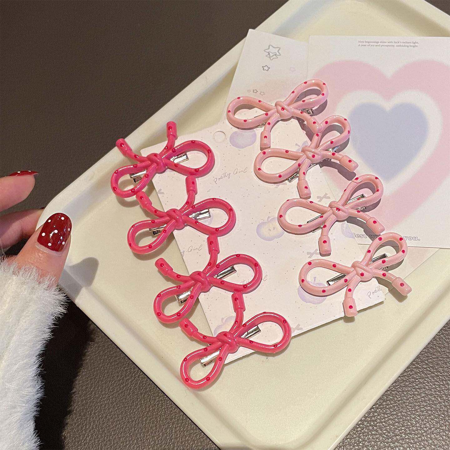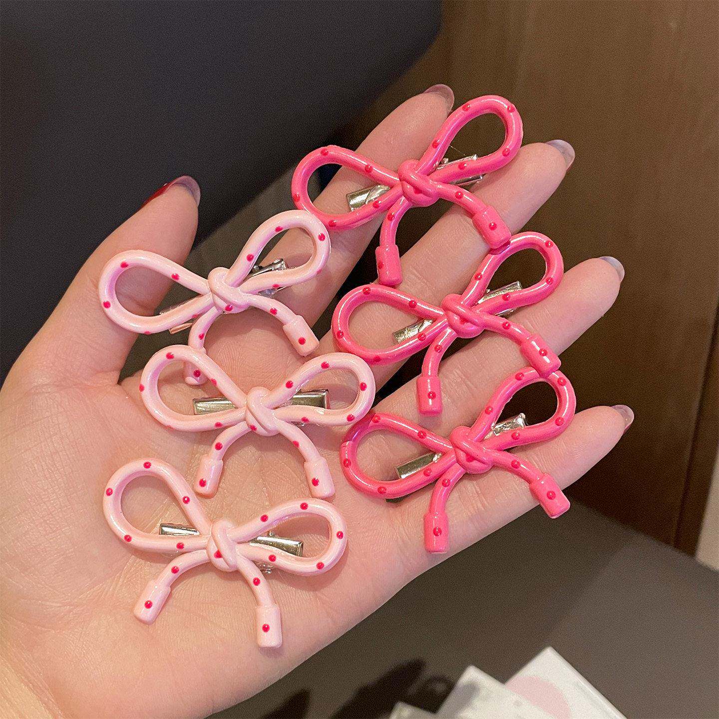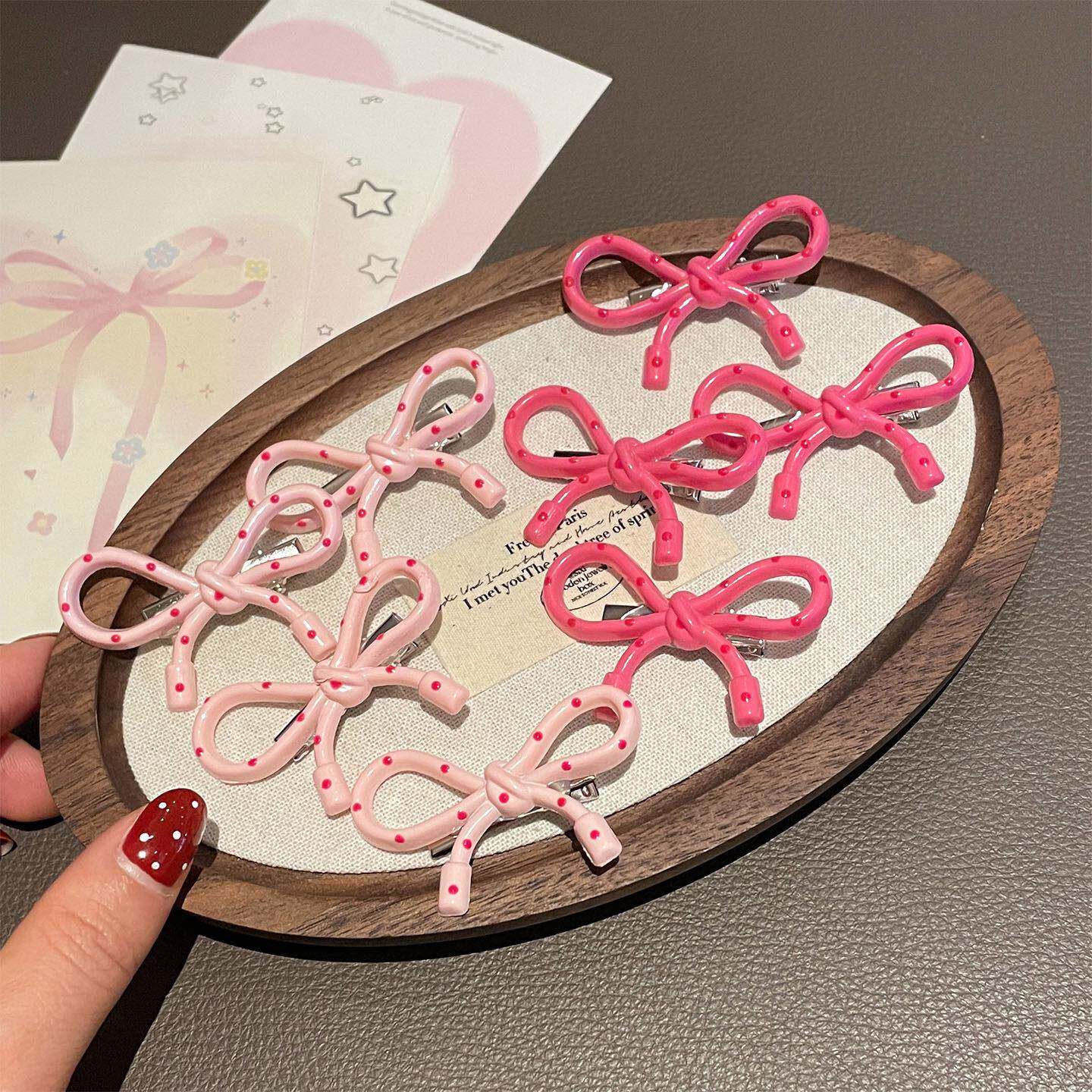 甜美粉色波点蝴蝶结发夹2026新款少女风前额刘海侧边夹子碎发夹