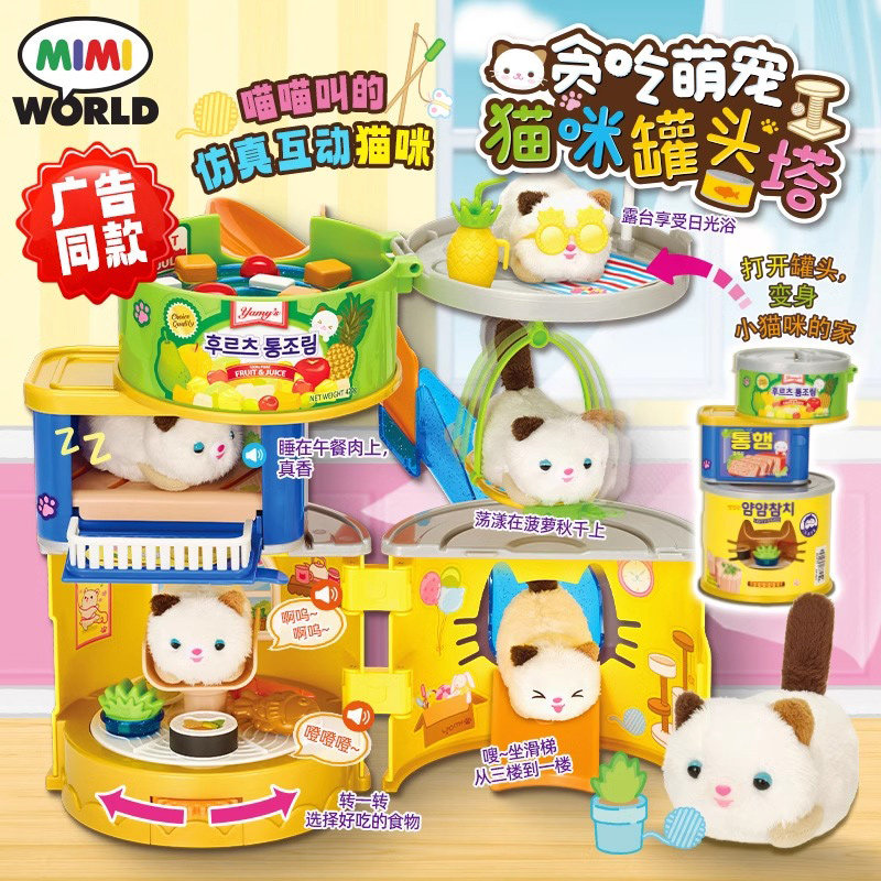 mimiworld贪吃萌宠猫咪罐头塔毛绒仿真过家家女孩玩具生日礼物