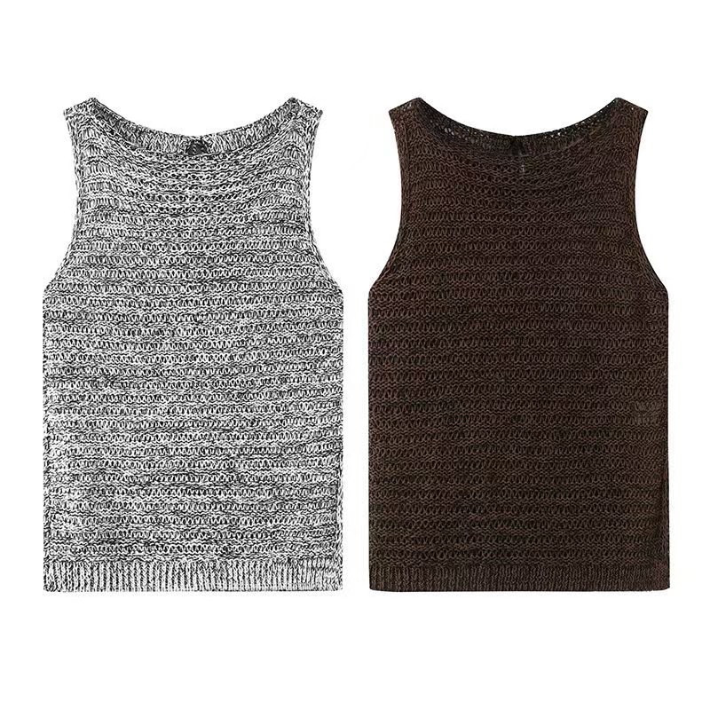 【商场同款】2025夏季新款时尚百搭显瘦无袖圆领短针织衫50538106